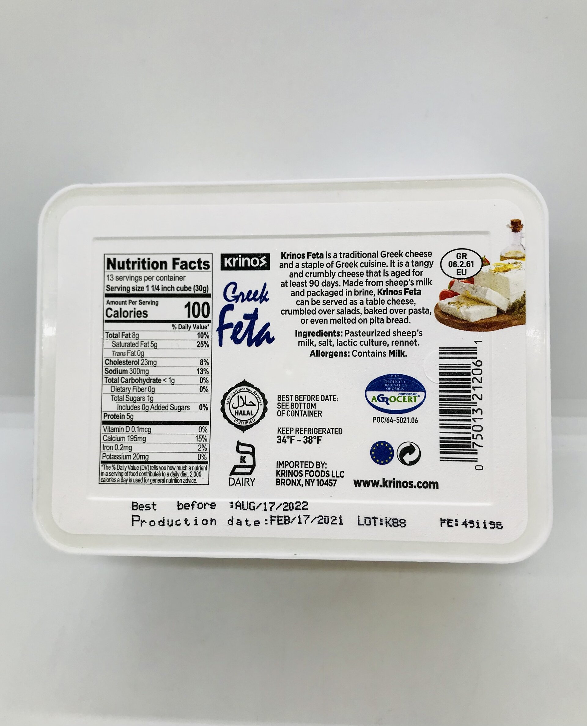 Pasteurized sheep's milk, salt, lactic. culture, rennet.