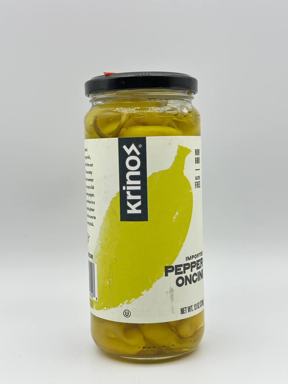 Pepperoncini, water, salt, vinegar, citric acid, sodium benzoate and sodium metabisulfite (preservatives), FD&C Yellow #5.