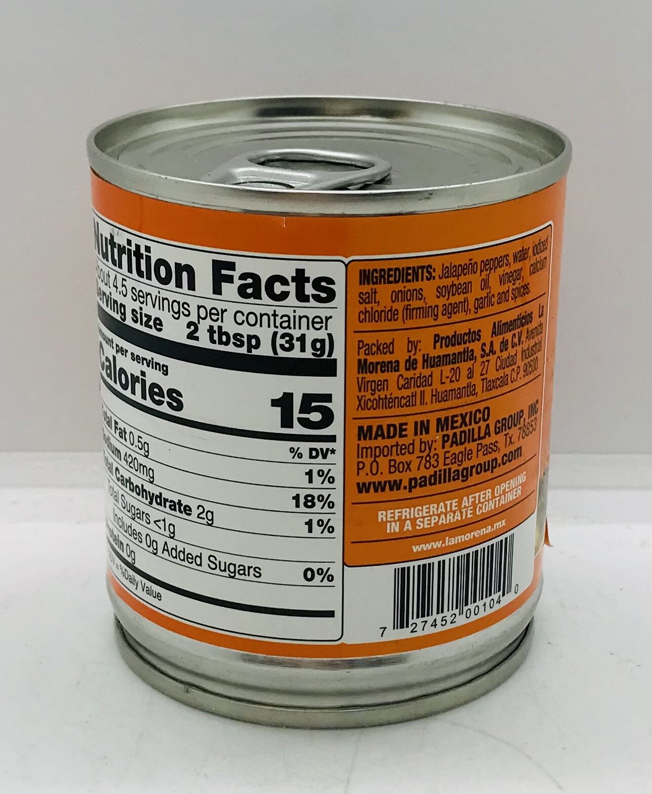 Jalapeno peppers, water, iodized salt, onions, soybean oil, vinegar, calcium chloride, garlic and spices.