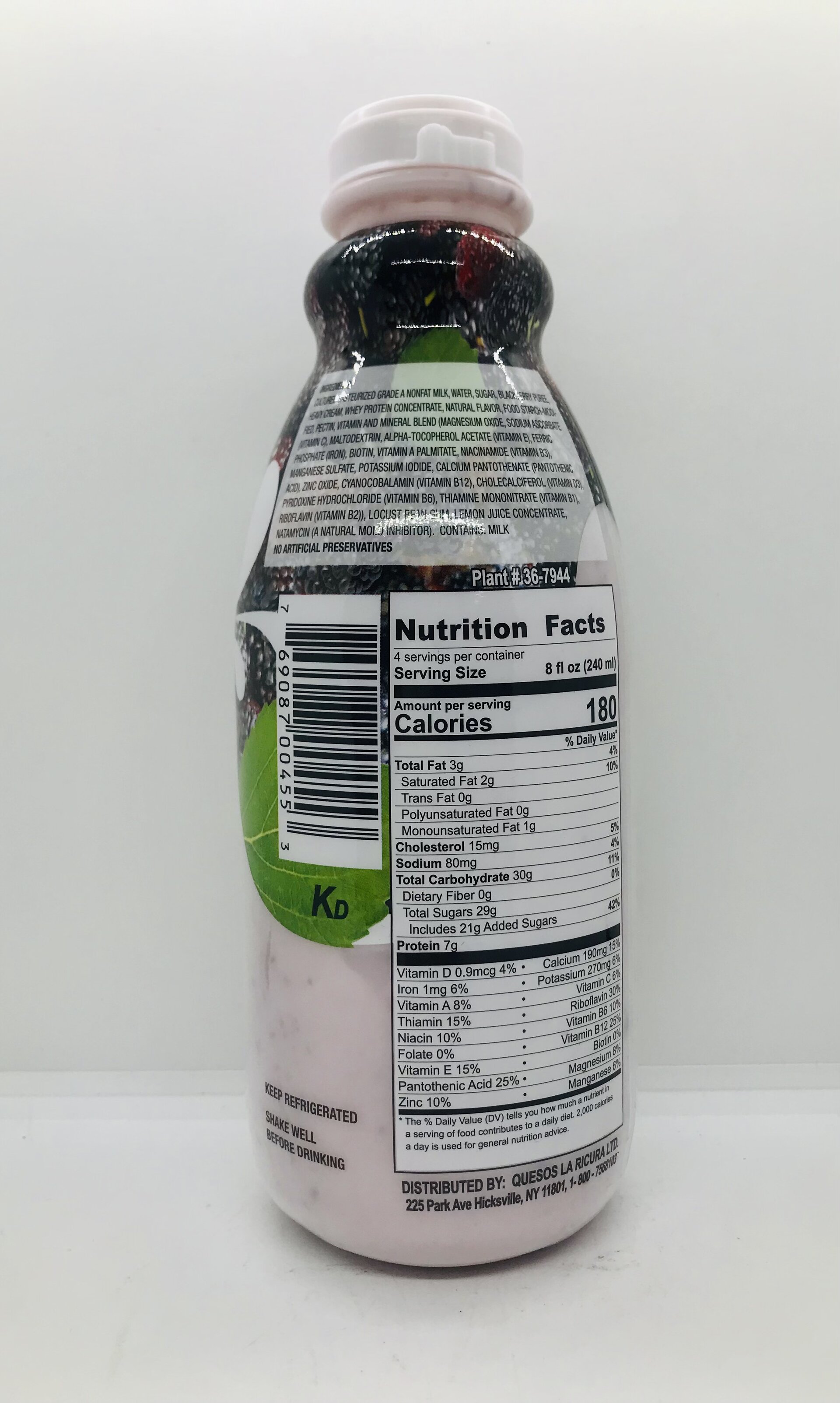 Cultured pasteurized grade A nonfat milk, water, sugar, blackberry puree, heavy, cream, whey protein concentrate, natural flavor, food starch-modified, vitamin and mineral blend, pectin, locust bean gum, lemon juice concentrate, natamycin.