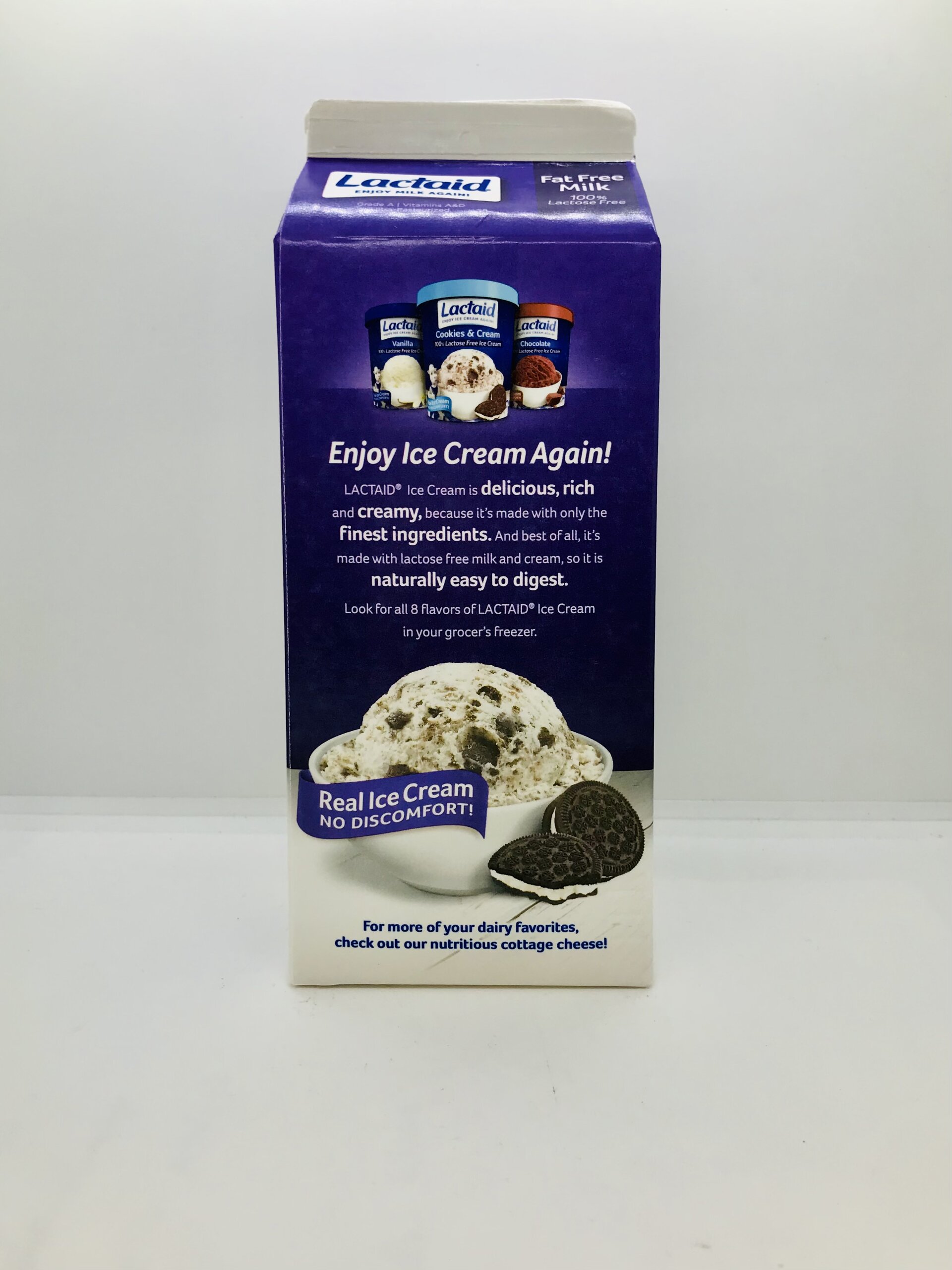 Fat free milk, lactase enzyme, vitamin A palmitate and vitamin D3