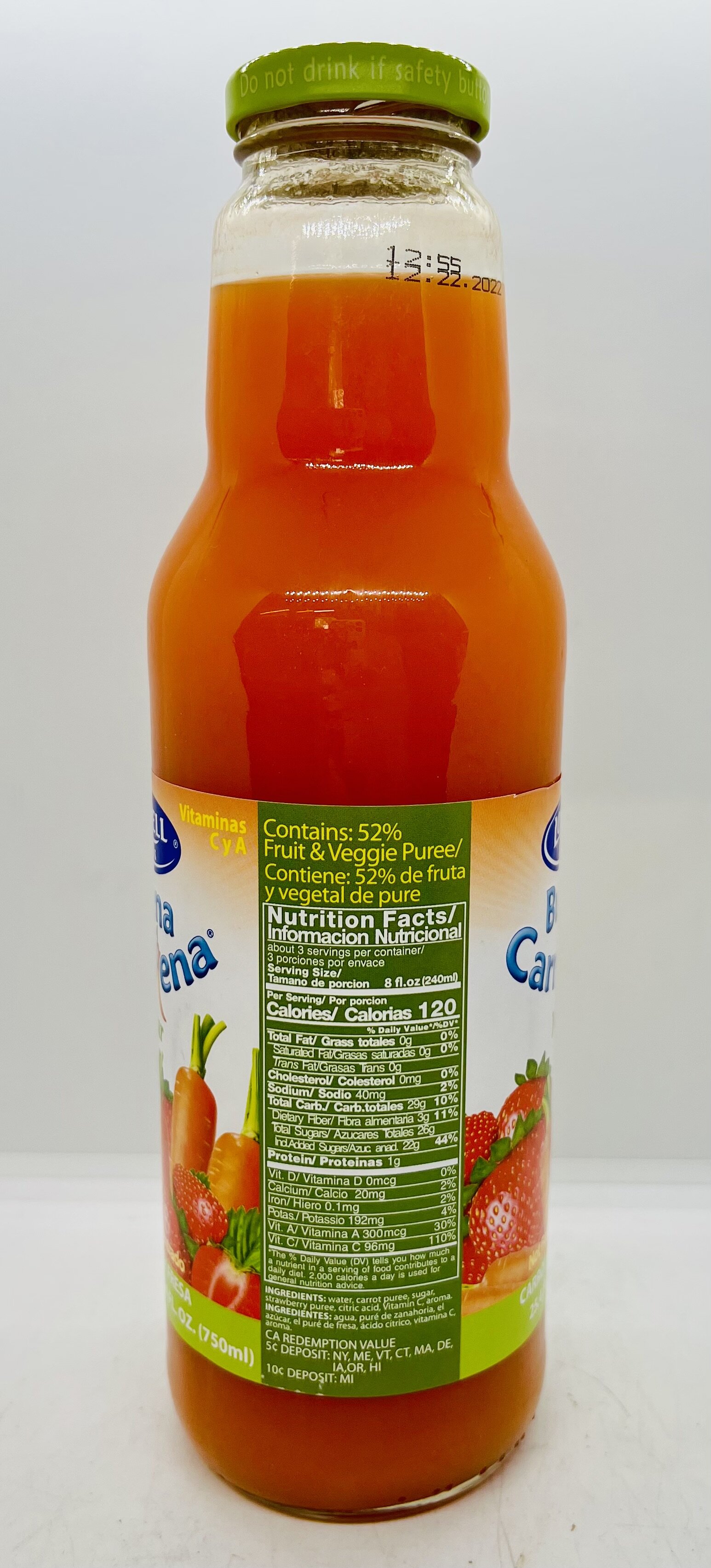Water, carrot puree, sugar, strawberry puree, citric acid, vitamin C aroma.