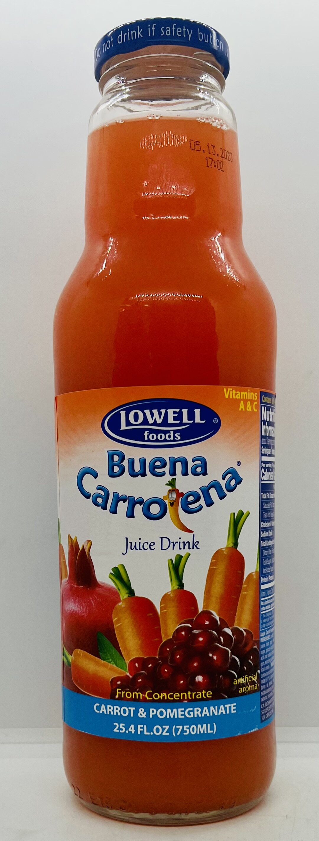 Water, juices made from concentrated juices from: apple, carrot (2,5%), pomegranate (0,1%), sugar, glucose-fructose syrup, acidity regulators - citric acid and sodium citrates; stabilizers - guar gum, xanthan gum, enriching substance-vitamin C, artificial color, artificial aroma.