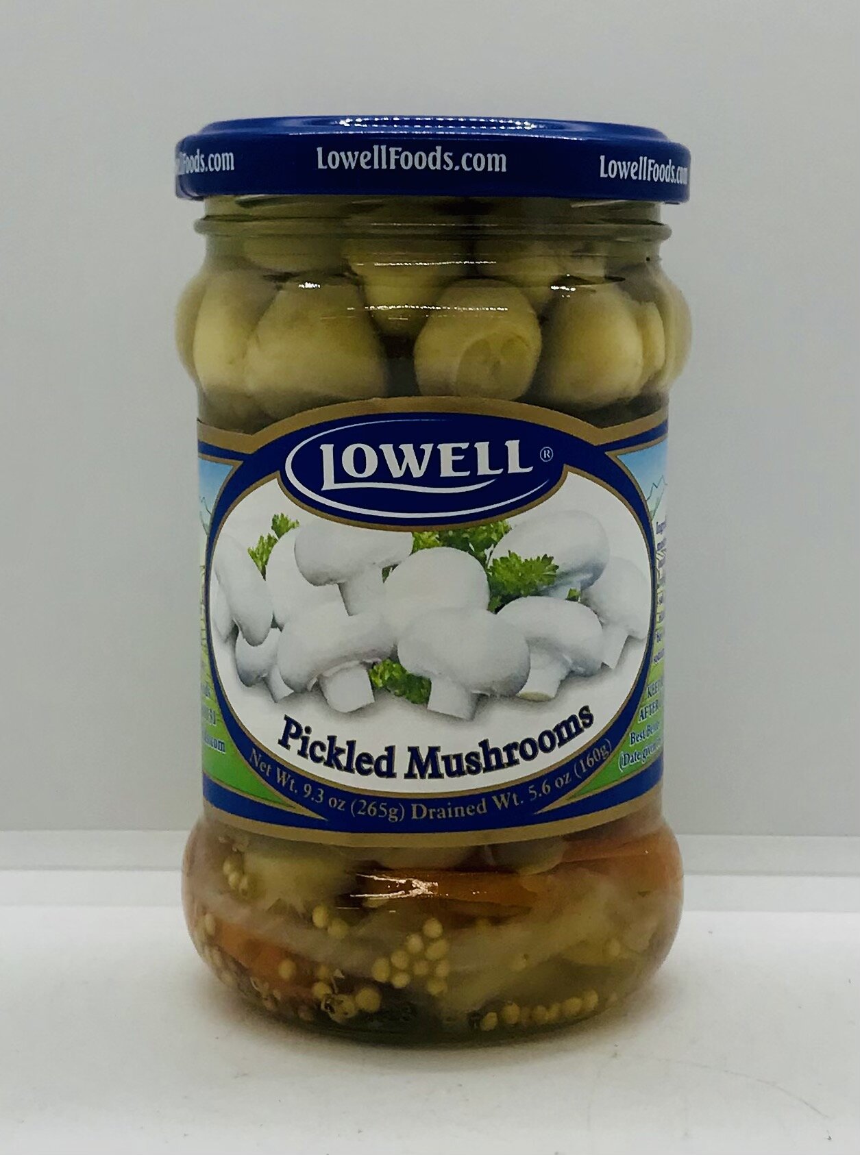 Mushrooms, water, onion, carrot, vinegar, sugar, salt, mustard seeds, black pepper, bay leaf, allspice, sodium metabisulfite.
