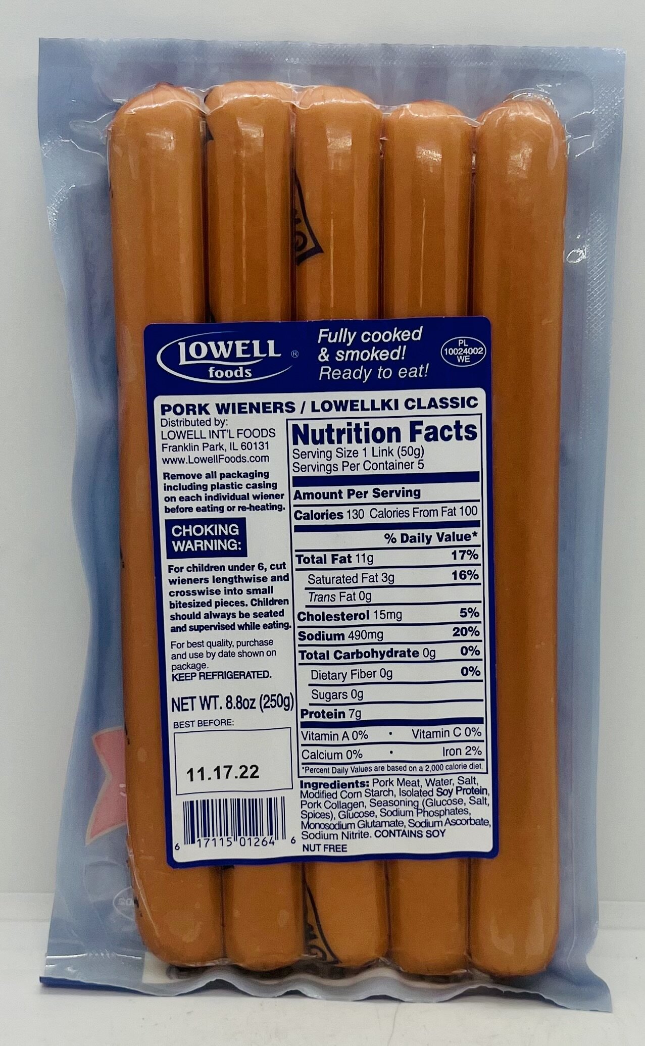 Pork meat, water, salt, modified corn starch, isolated soy protein, pork collagen, seasoning, glucose, sodium phosphates, monosodium glutamate, sodium ascorbate, sodium nitrite.