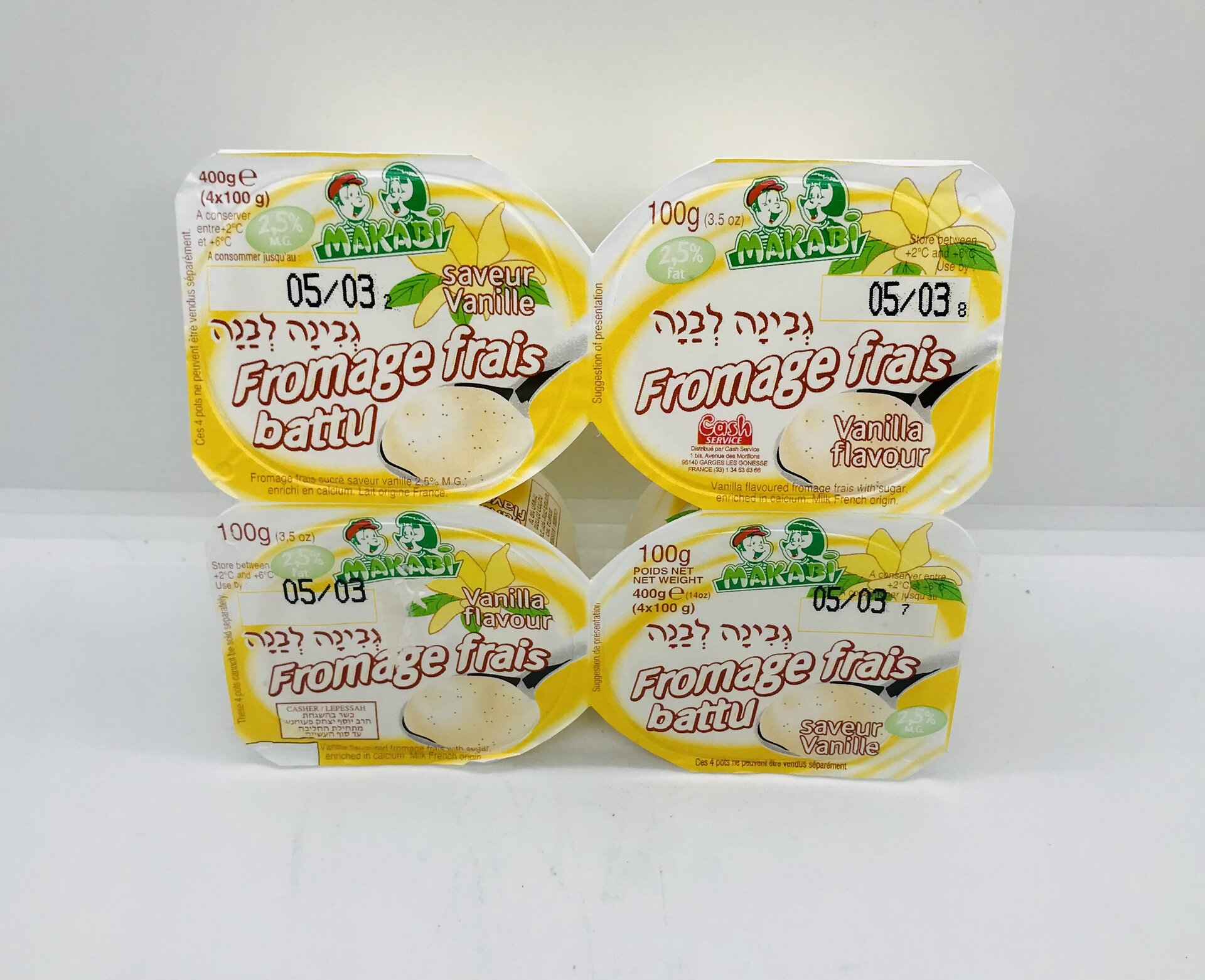 Fromage frais with pasteurized skimmed milk 75.6%, sugar 8.6%, pasteurized cream, calcium phosphate, modified starch, flavouring, acidity regulators
