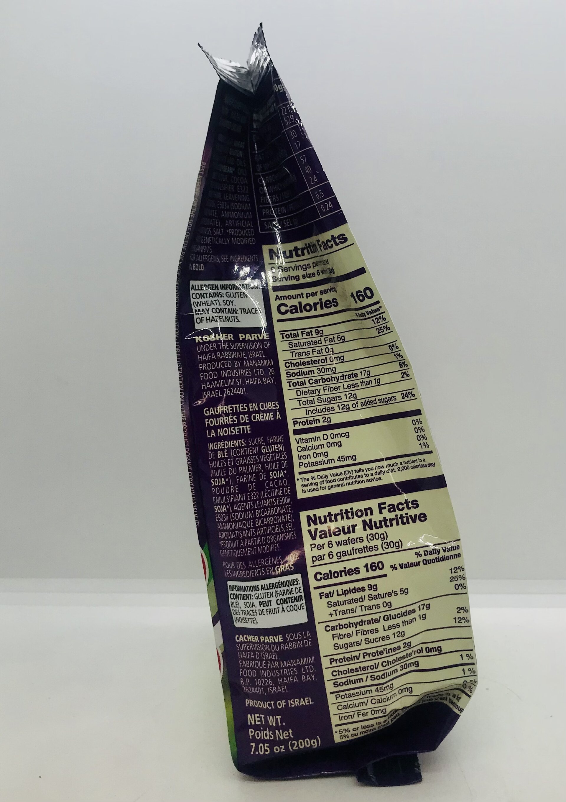 SUGAR, WHEAT FLOUR (CONTAINS GLUTEN), VEGETABLE FATS AND OILS (PALM OIL, SOYBEAN* OIL) SOYBEAN* FLOUR, COCOA POWDER, EMULSIFIER E322 (SOY* LECITHIN), LEAVENING AGENTS E500ii, E503ii (SODIUM BICARBONATE, AMMONIUM BICARBONATE), ARTIFICIAL FLAVORINGS, SALT. *PRODUCED FROM GENETICALLY MODIFIED ORGANISMS.