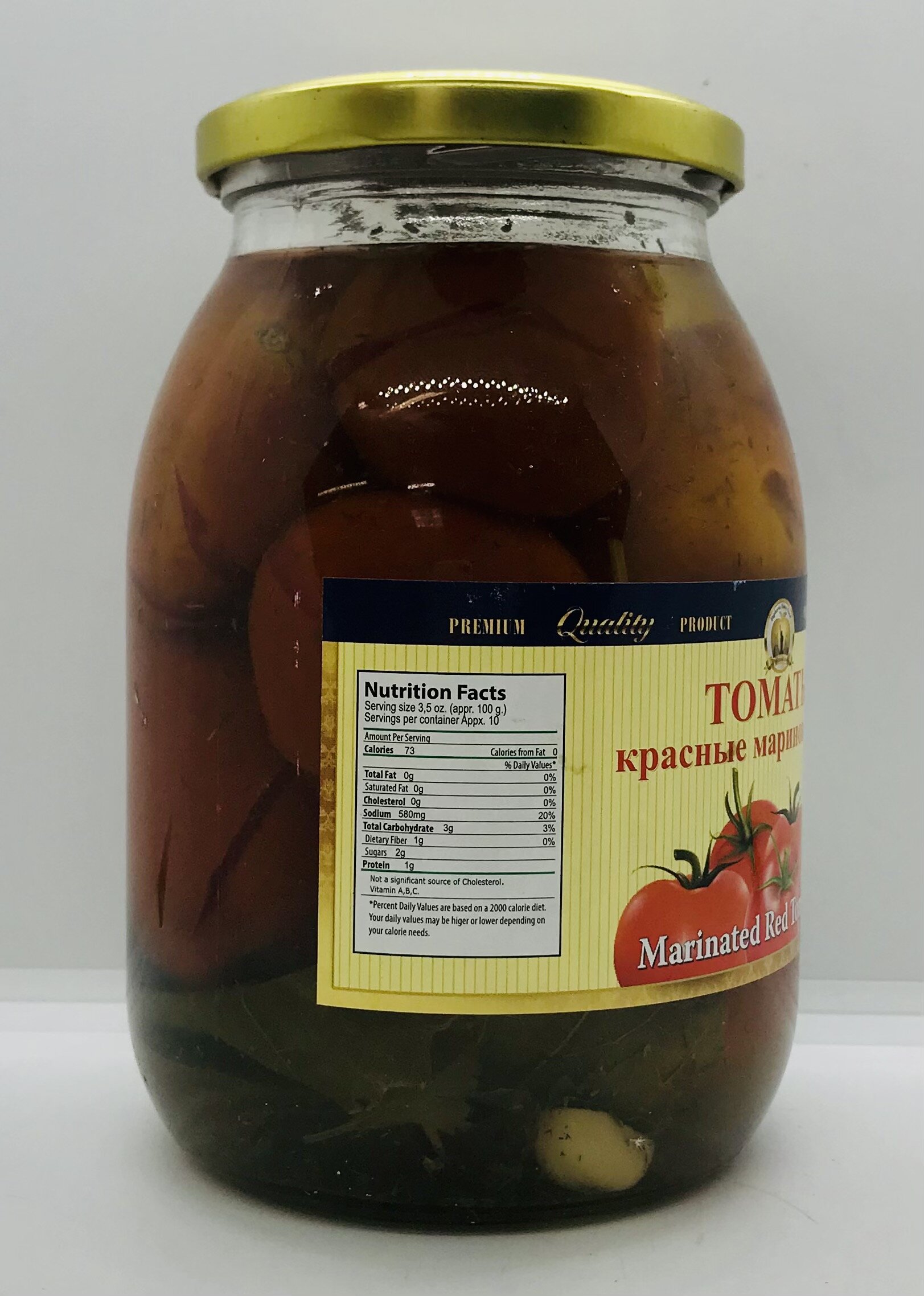 Red tomatoes 54%, water 41%, sugar 2%, salt, garlic, citric acid, black pepper, cherry leaf, laurel, dill flower, cloves.