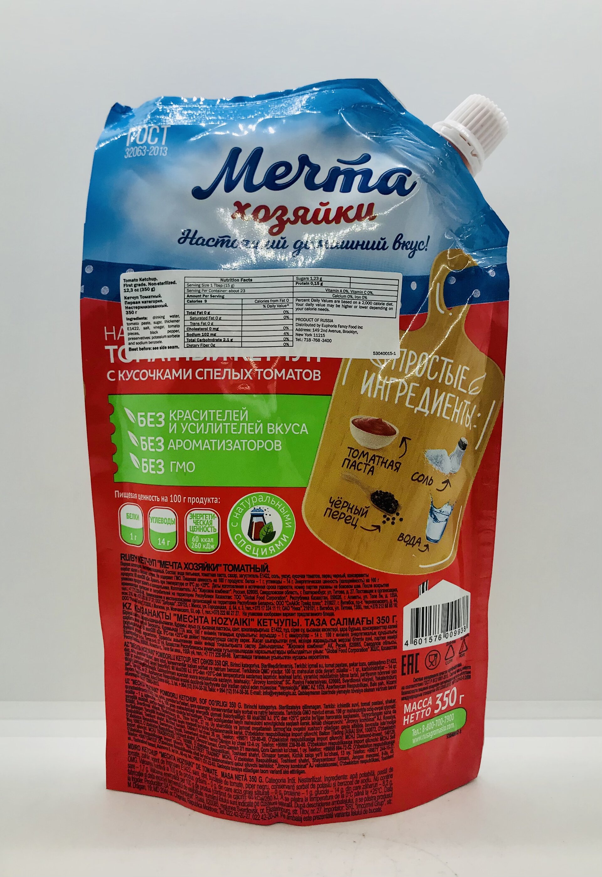 Drinking water, tomato paste, sugar, thickener E1422, salt, vinegar, tomato pieces, black pepper, preservatives: potassium sorbate and sodium benzoate.