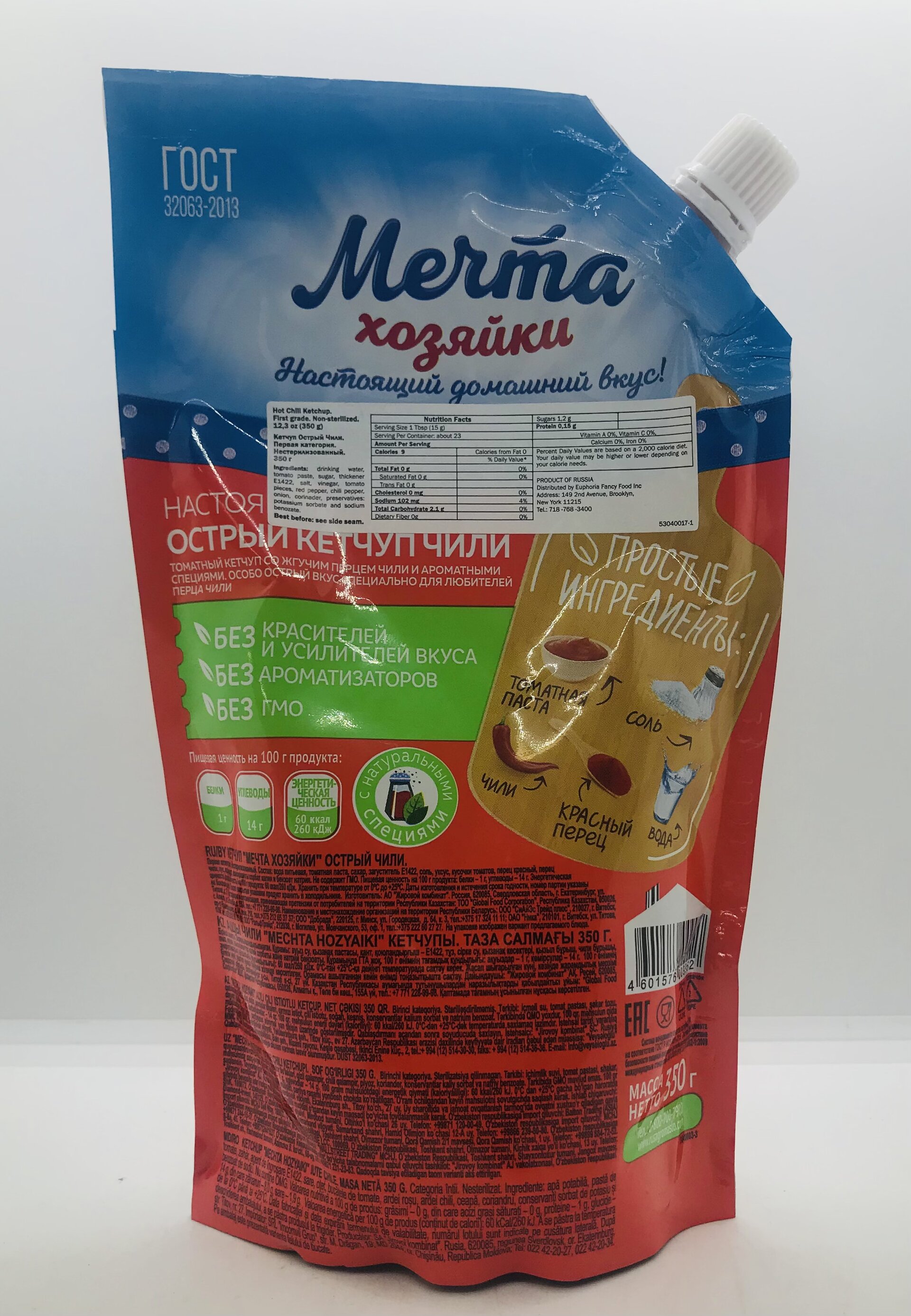 Drinking water, tomato paste, sugar, thickener E1422, salt, vinegar, tomato pieces, red pepper, chili pepper, onion, coriander, preservatives: potassium sorbate and sodium benzoate.