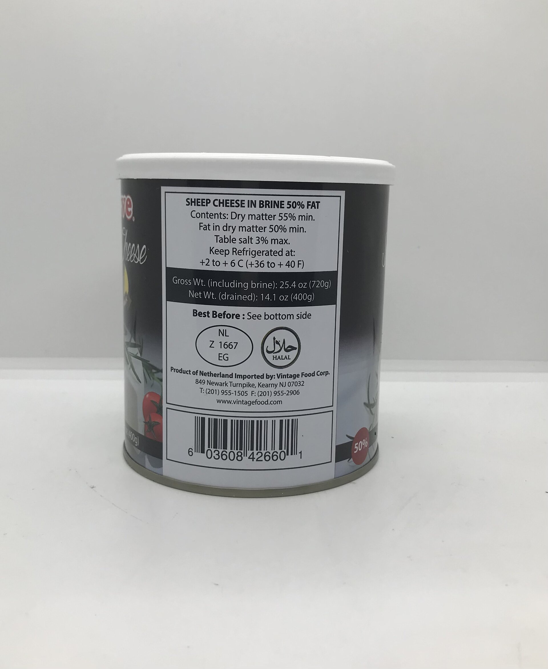 Sheep's cheese in brine 50% Fat Pasratiuzed sheep's milk, salt, biosocial rennet, bacterial, culture.