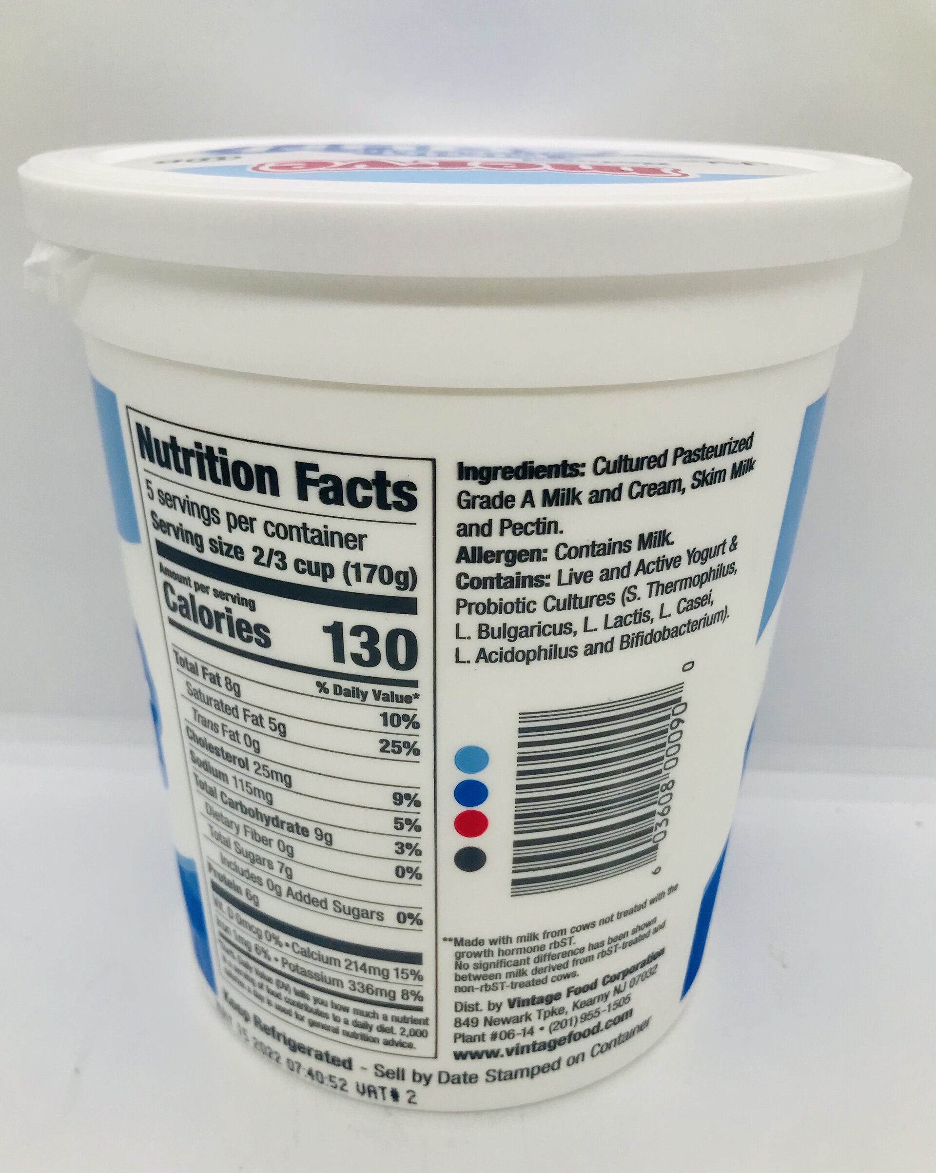 Cultured pasteurized Grade A milk and cream, skim milk & Pectin