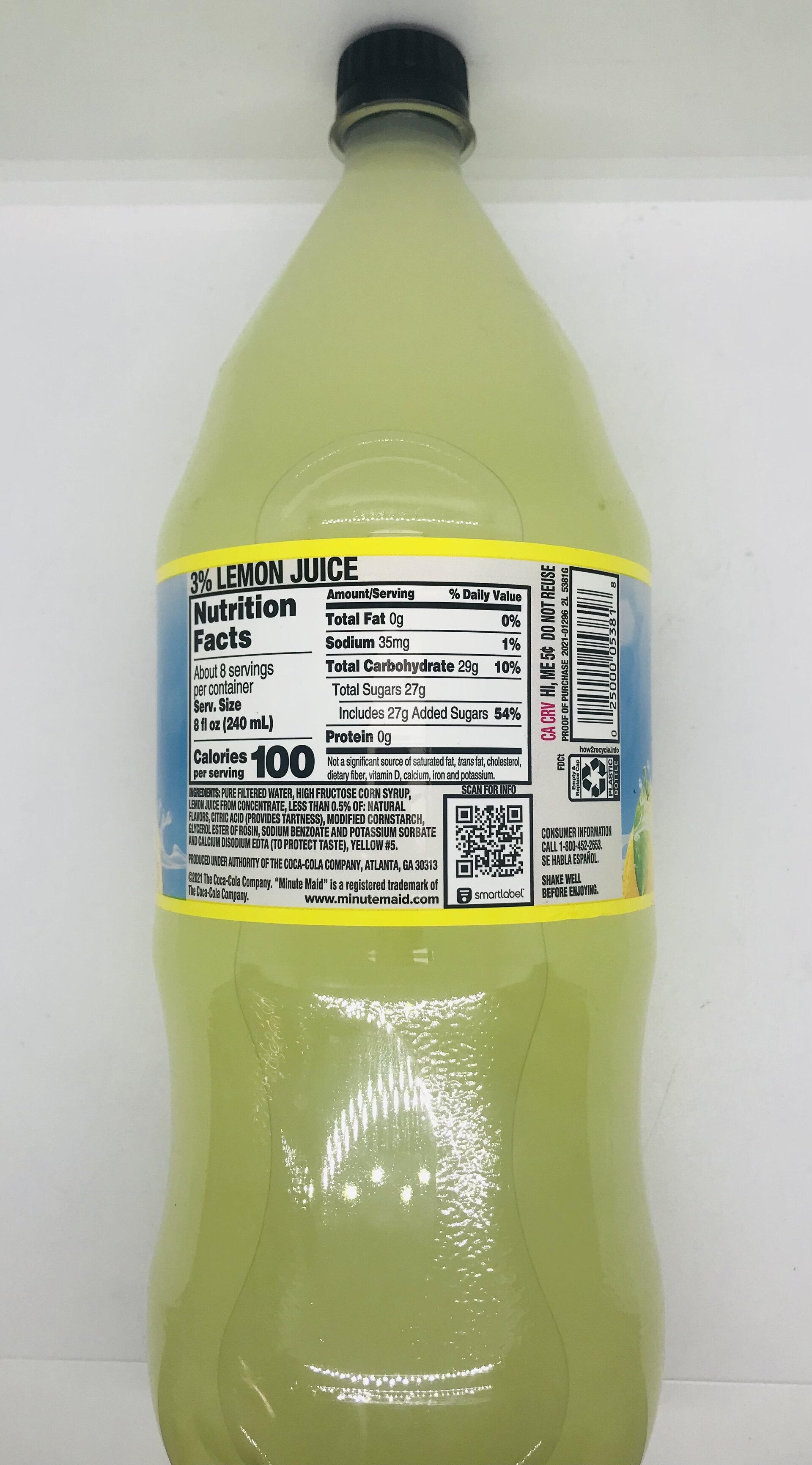 Pure filtered water, high fructose corn syrup, lemon juice from concentrate, less than 0.5% of: natural flavors, citric acid, modified corn starch, glycerol ester of rosin, sodium benzoate and potassium sorbate and calcium disodium edta, yellow 5.