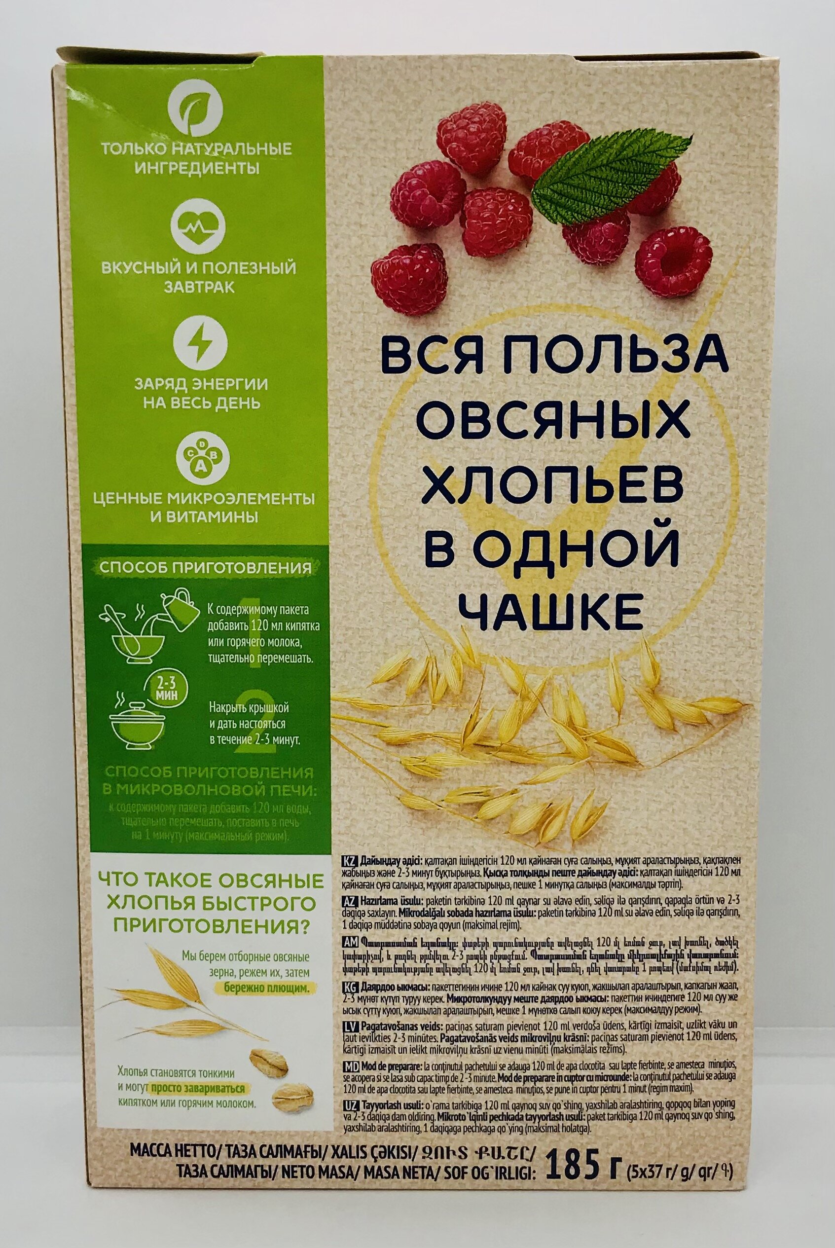 Whole grain rolled oats, sugar, dry milk whey powder, coconut oil, salt, dry raspberries, flavoring.