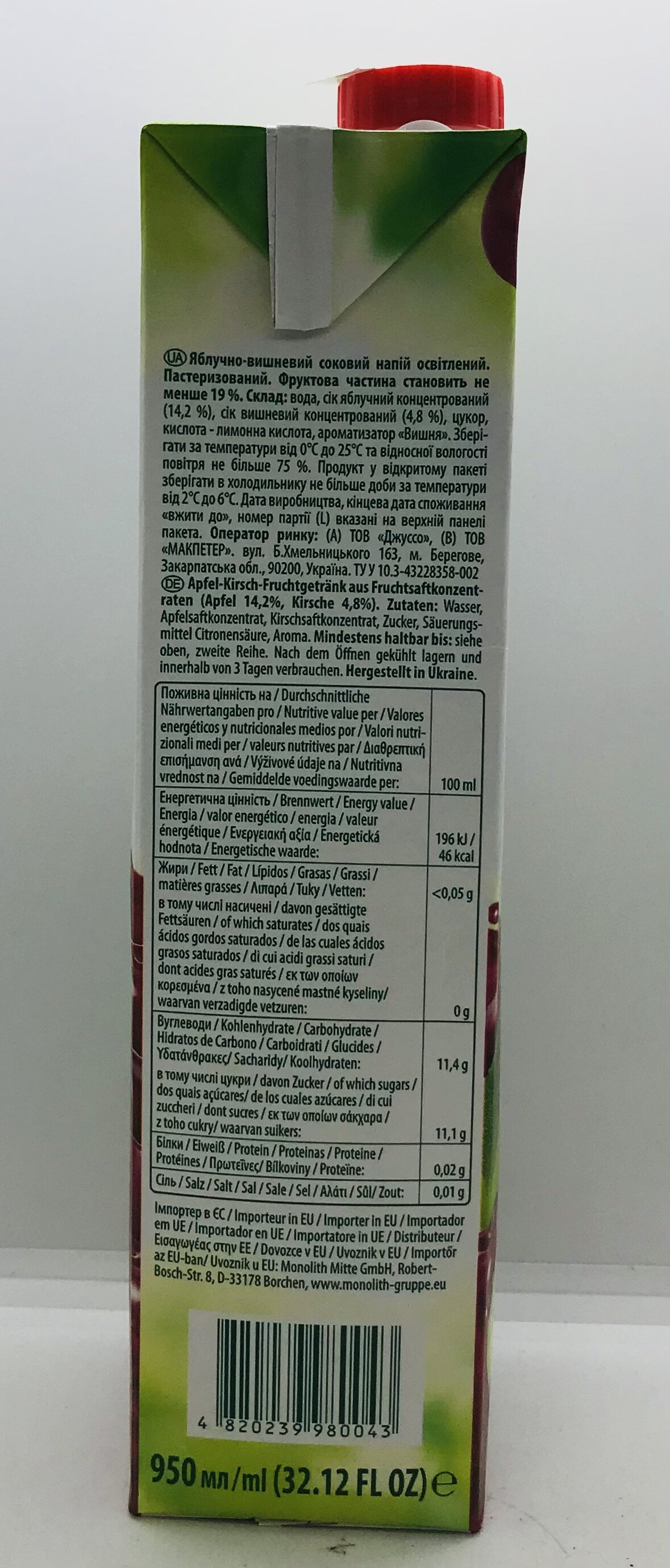 Water, concentrated apple juice, concentrated cherry juice, sugar, acid citric acid, aroma.