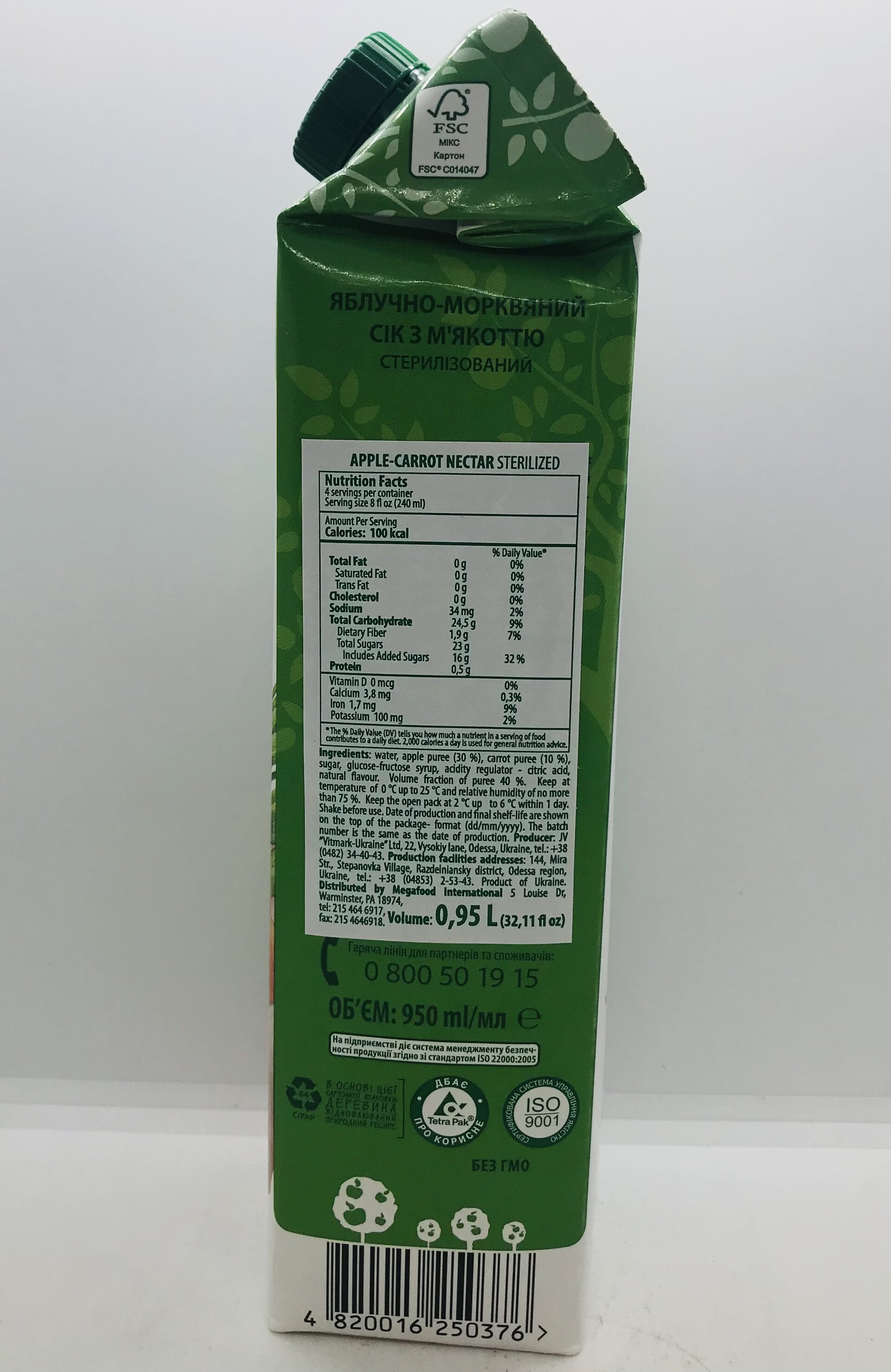 Water, apple puree, carrot puree, sugar, glucose-fructose syrup, acidity regulator-citric acid, natural flavour.