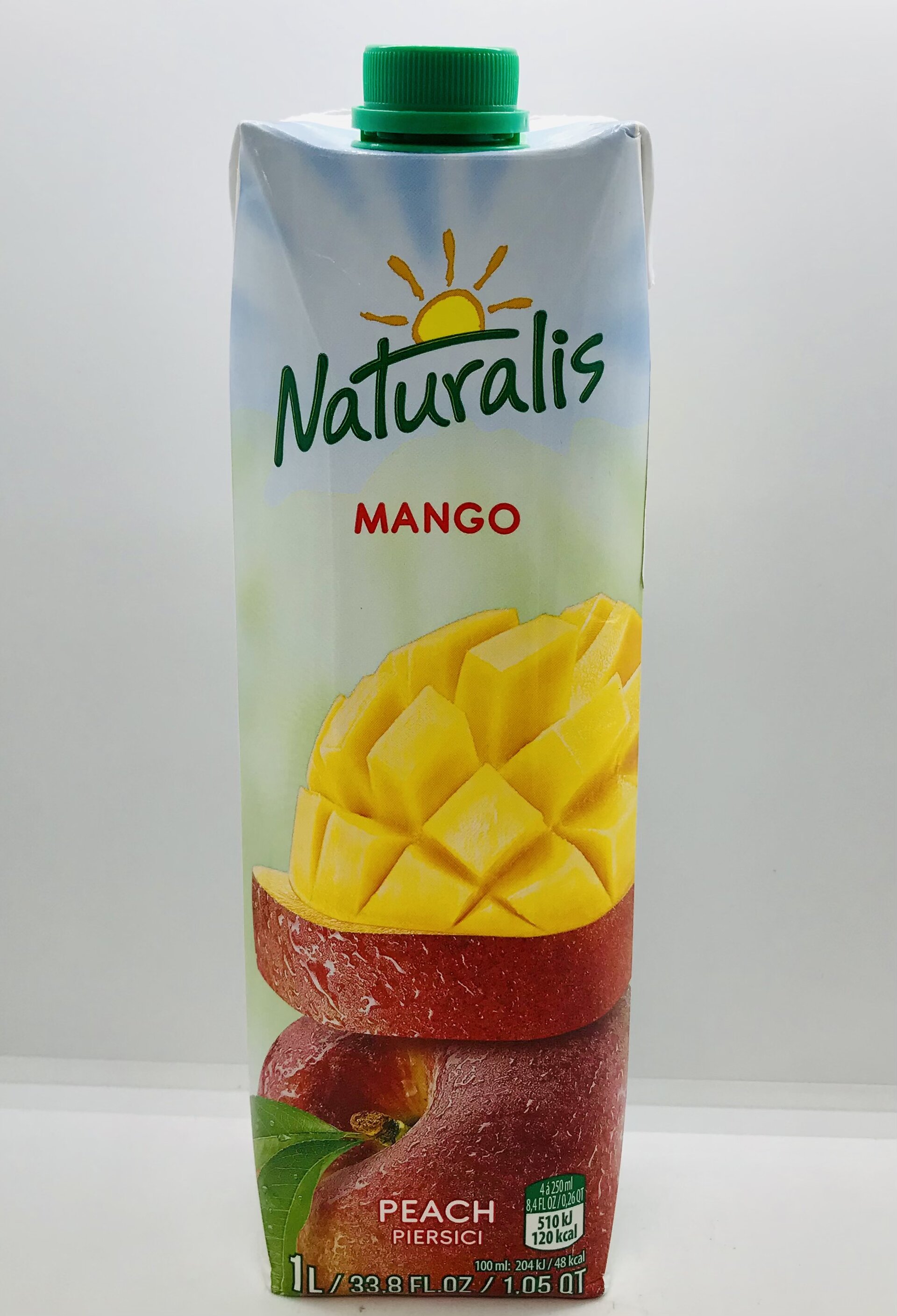 Water, peach puree, mango puree, sugar, citric acid and potassium citrate - acidity regulators, antioxidant- ascorbic acid, colorant-carotene and paprika extract, stabilisers(guar gum, gum arabic), identical natural and natural flavorings.