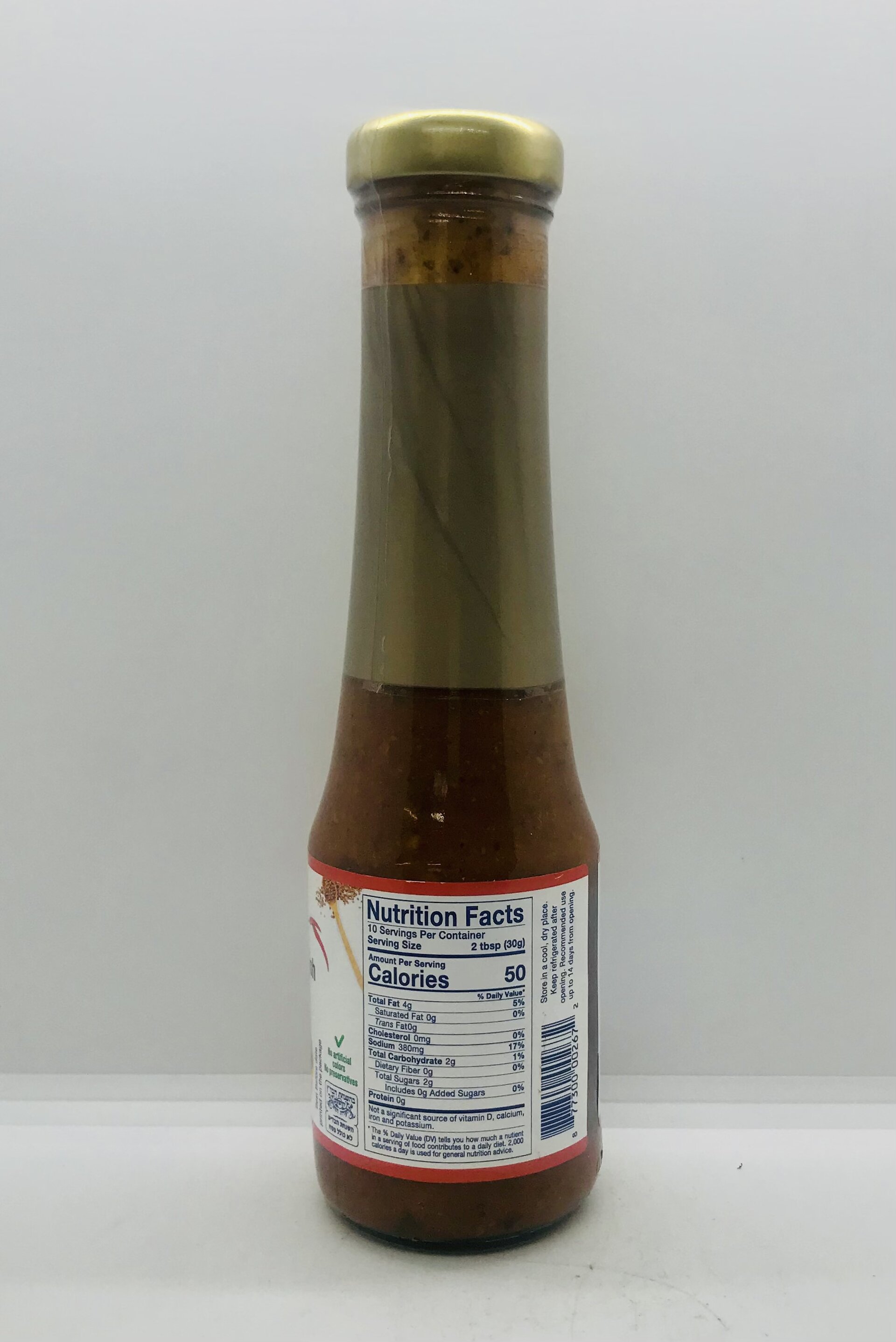 Water, Spices, Sweet Paprika, Celery, Turmeric, Tomatoes, Salt, Canola Oil, Natural Vinegar, Dried." Garlic, Acidity Regulator (Citric Acid), Dried Onion, Modified Starch (Acetylated Distarch Adipate), Dextrose, Stabilizer (Xanthan Gum).