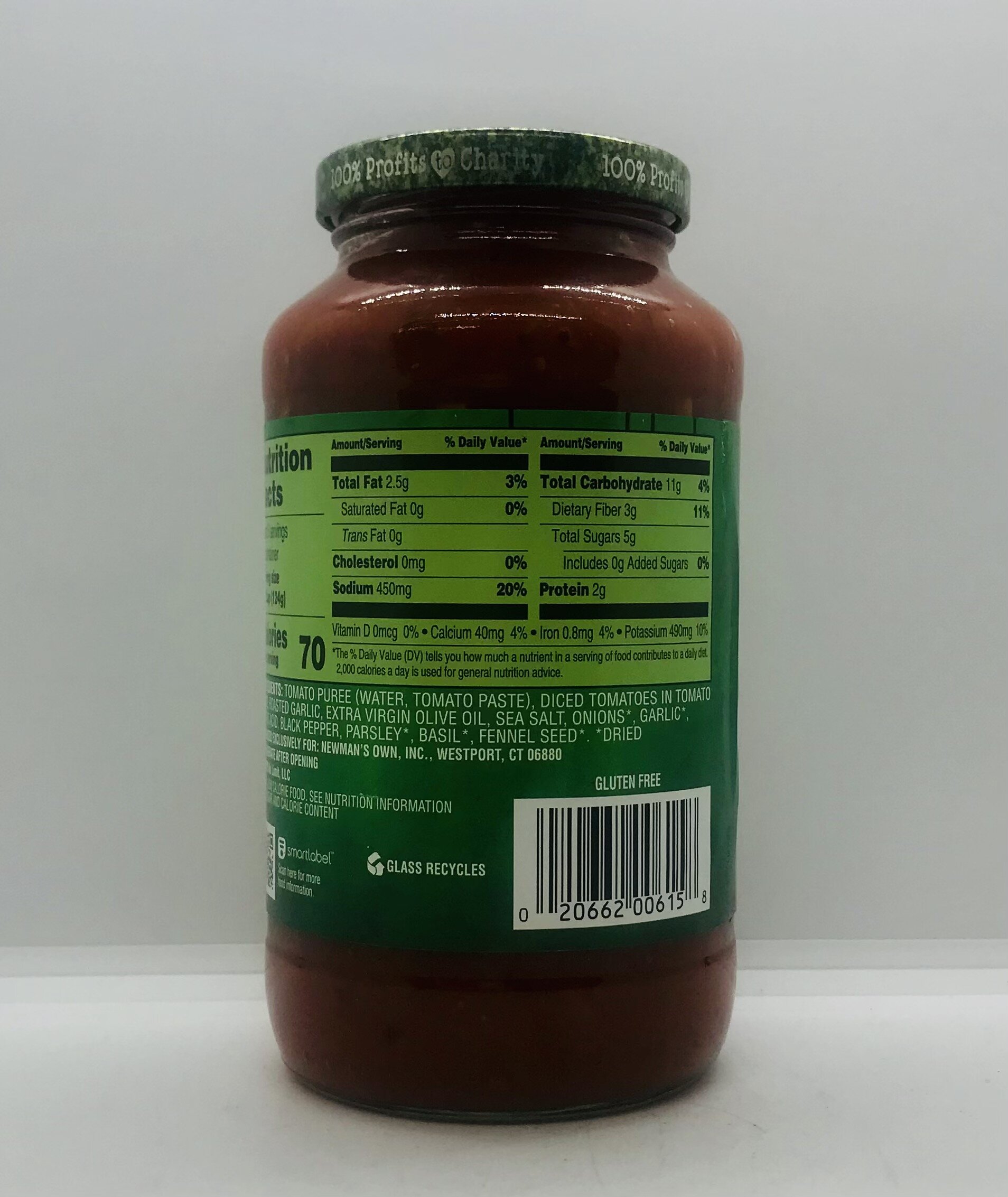 Tomato puree (water, tomato paste), diced tomatoes in tomato juice, roasted garlic, extra virgin olive oil, sea salt, onions, garlic, citric acid, black pepper, parsley, basil, fennel seed.