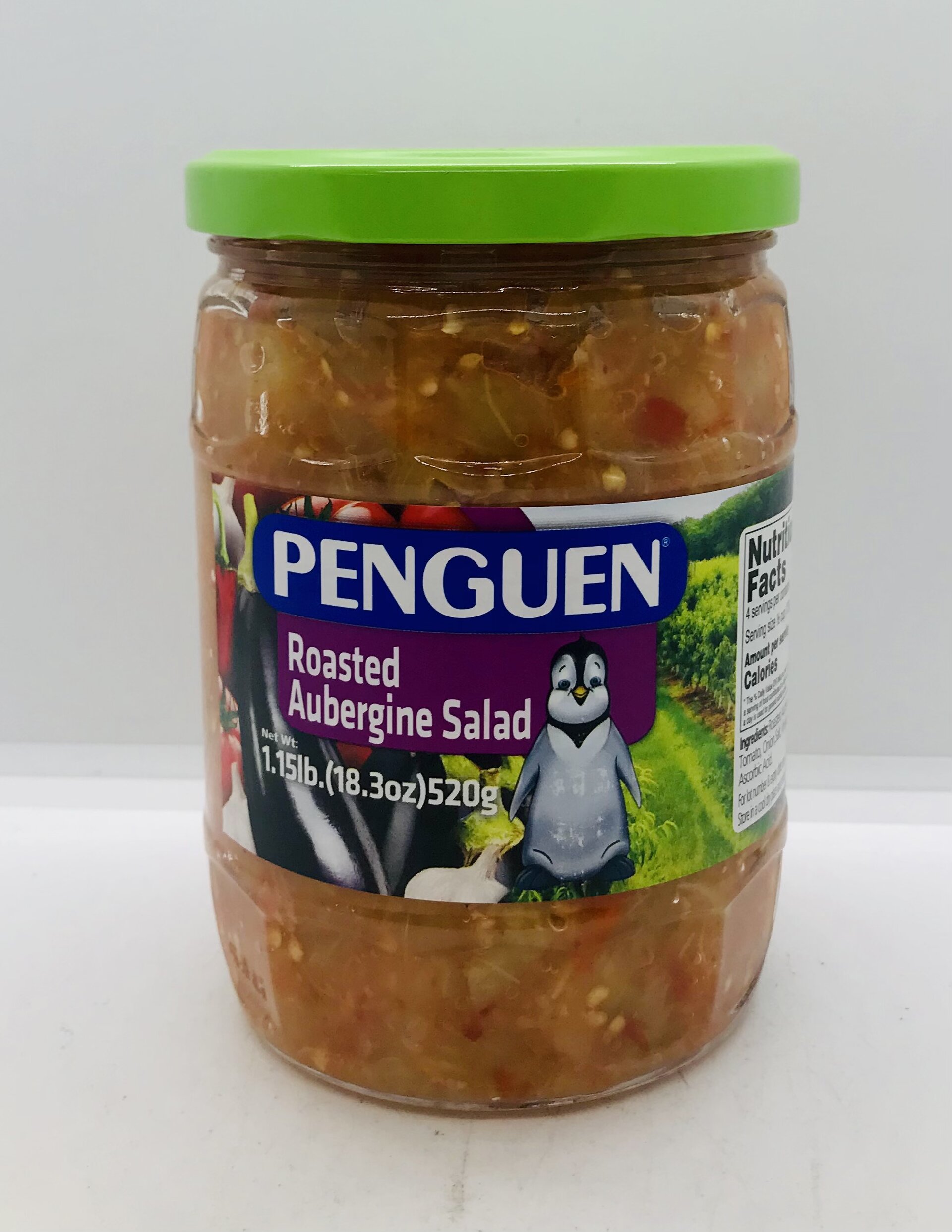 Roasted Aubergine, roasted pepper, tomato, onion, salt, vinegar, sugar, acidifier: citric acid, ascorbic acid.