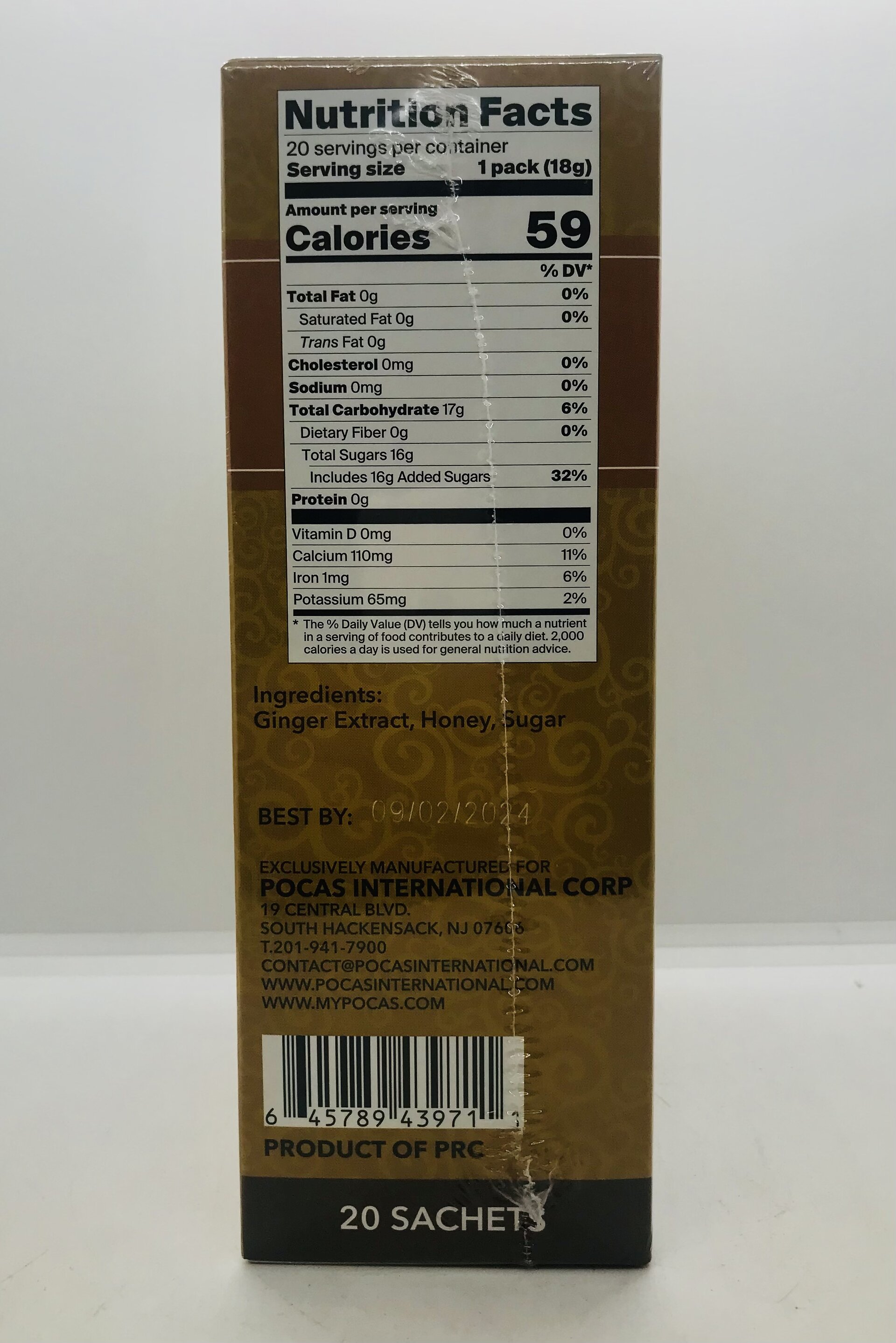 Ginger extract, honey, sugar.