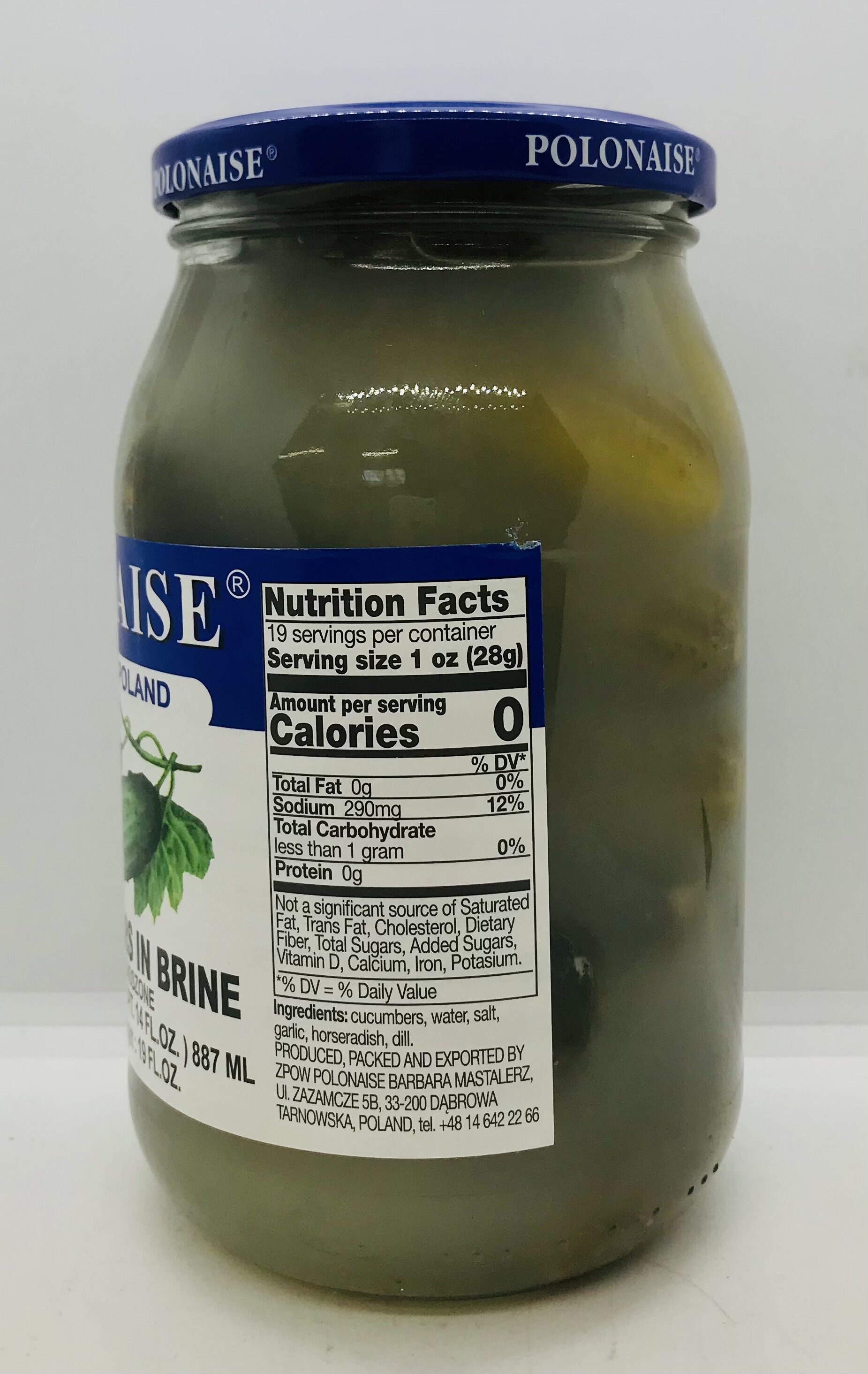 Cucumbers, water, salt, garlic, horseradish, dill.