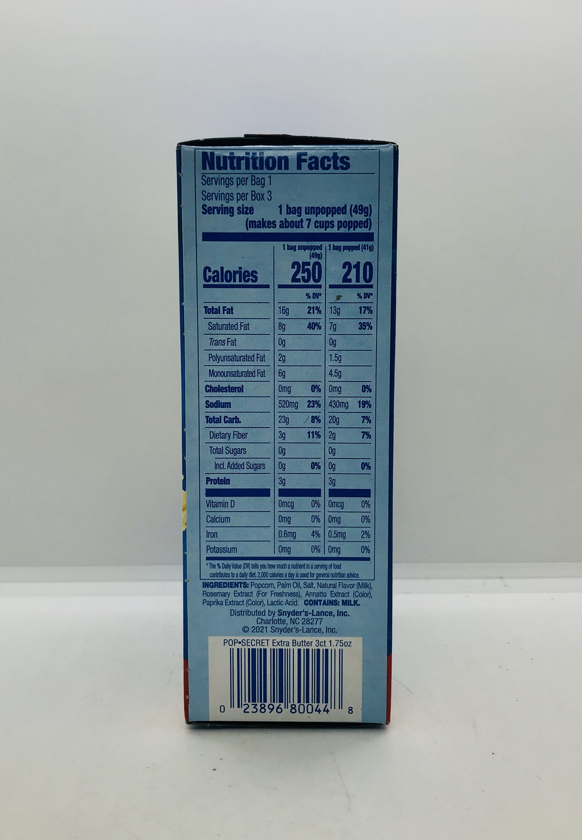 Popcorn, palm oil, salt, natural flavor (milk), rosemary extract (for freshness), annatto extract (color), paprika extract (color), lactic acid.