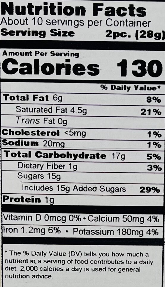 Sugar, cocoa mass, glucose syrup, fat (palm and shea in varying proportions), cocoa butter, glucose-maltose syrup, whey powder (from milk), whole milk powder, skimmed milk, apple puree 1.2%, humectant: sorbitol's, glucose, raspberry puree 0.4%, flavorings, malt crisps 0.15% [wheat flour, sugar, wheat malt 5%, emulsifier: lecithin's (from sunflower), wheat starch, raising agents: carbonates sodium, salt, flavoring), acidity regulator: citric acid, emulsifiers: lecithin's (from soy) and polyglycerol polyricinoleate, milk fat. concentrated peach puree 0.12%, cottage cheese powder (from milk) 0.1%, caramel 0.1% (sugar, glucose syrup, butter (from milk), cream powder (milk), salt, raising agent: sodium carbonate), black carrot juice concentrate, color: caramel, cinnamon 0.01%, thickener: pectin's, curcumin, carrot concentrate, salt.