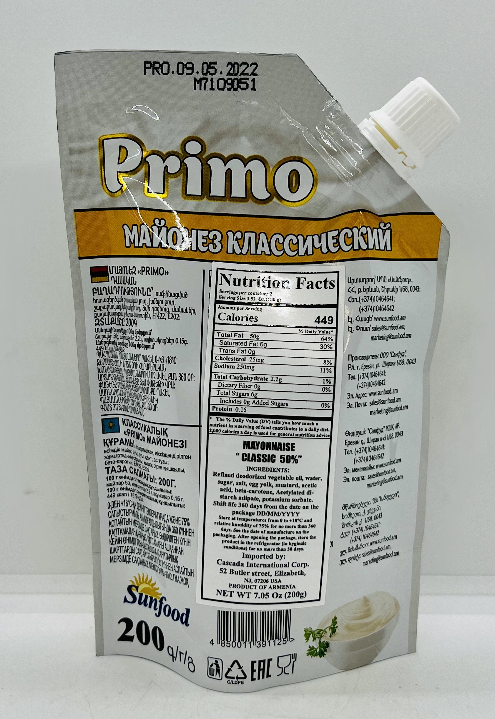 Refined deodorized vegetable oil, water, sugar, salt, egg yolk, mustard, acetic acid, beta-carotene, Acetylated distarch adipate, potassium sorbate.