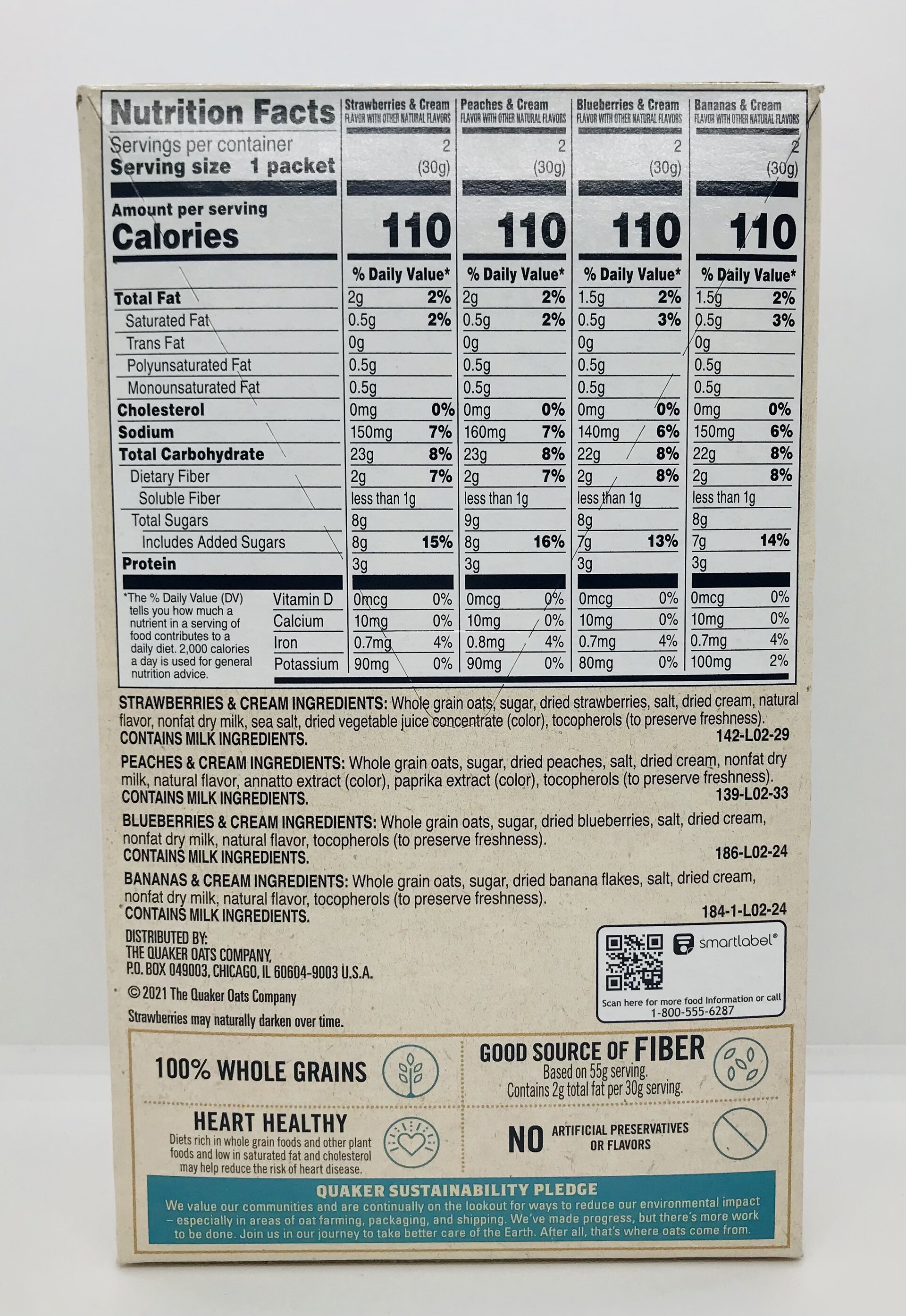 Whole grain oats, sugar, dried strawberries, salt, dried cream, natural flavor, nonfat dry milk, sea salt, dried vegetable juice concentrate, tocopherols.
