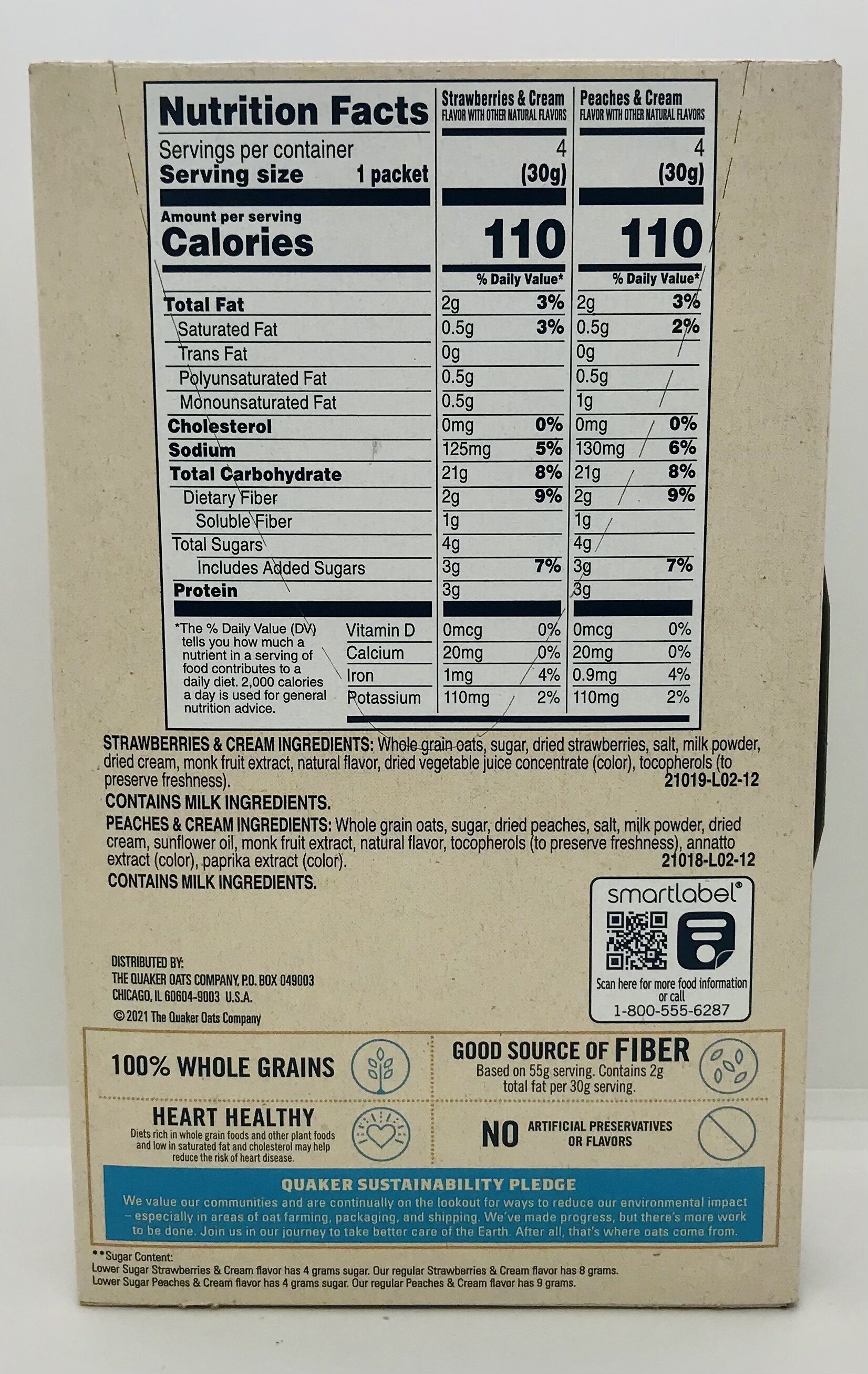Whole grain oats, sugar, dried strawberries, salt, milk powder, dried cream, monk fruit extract, natural flavor, dried vegetable juice concentrate, tocopherols.