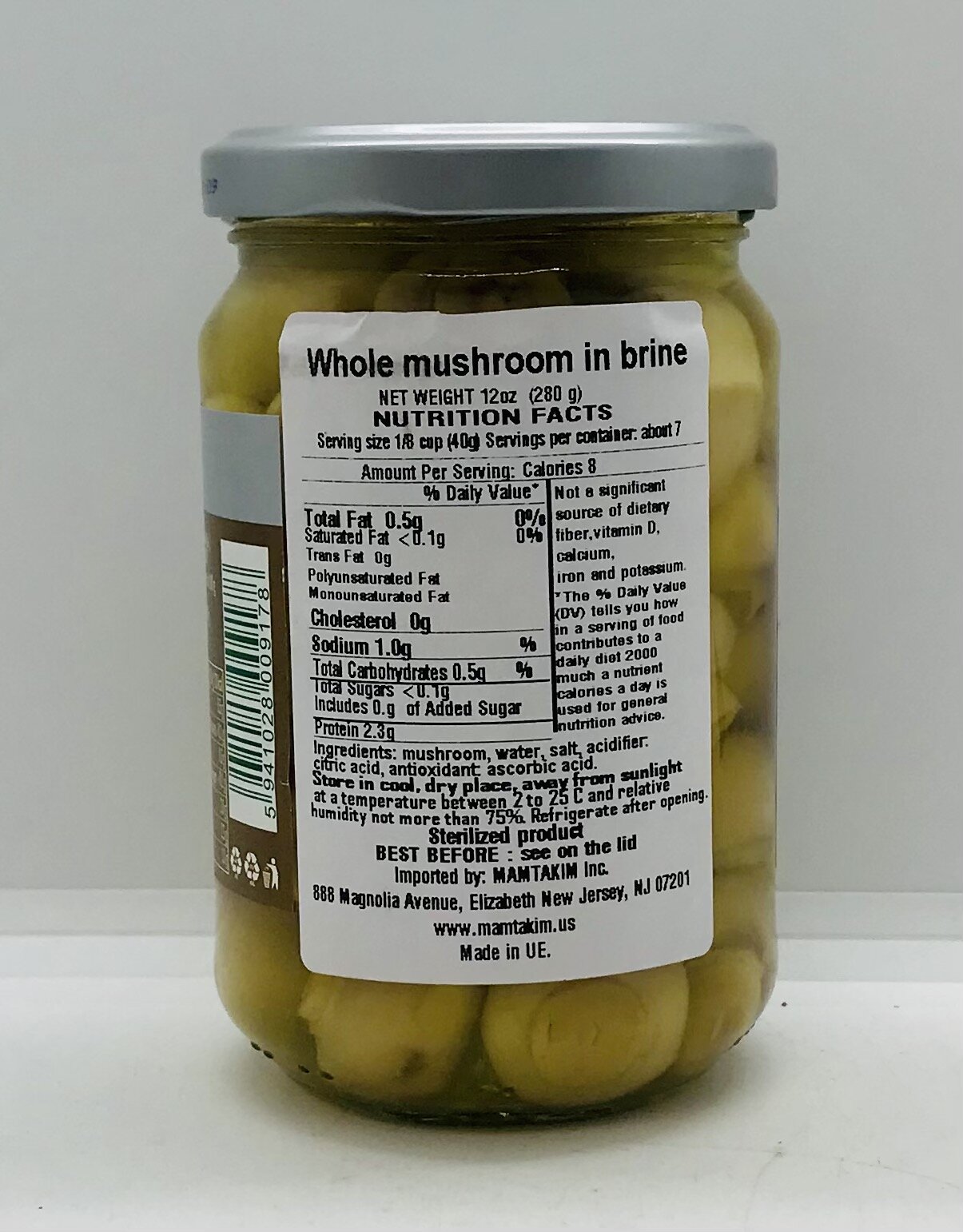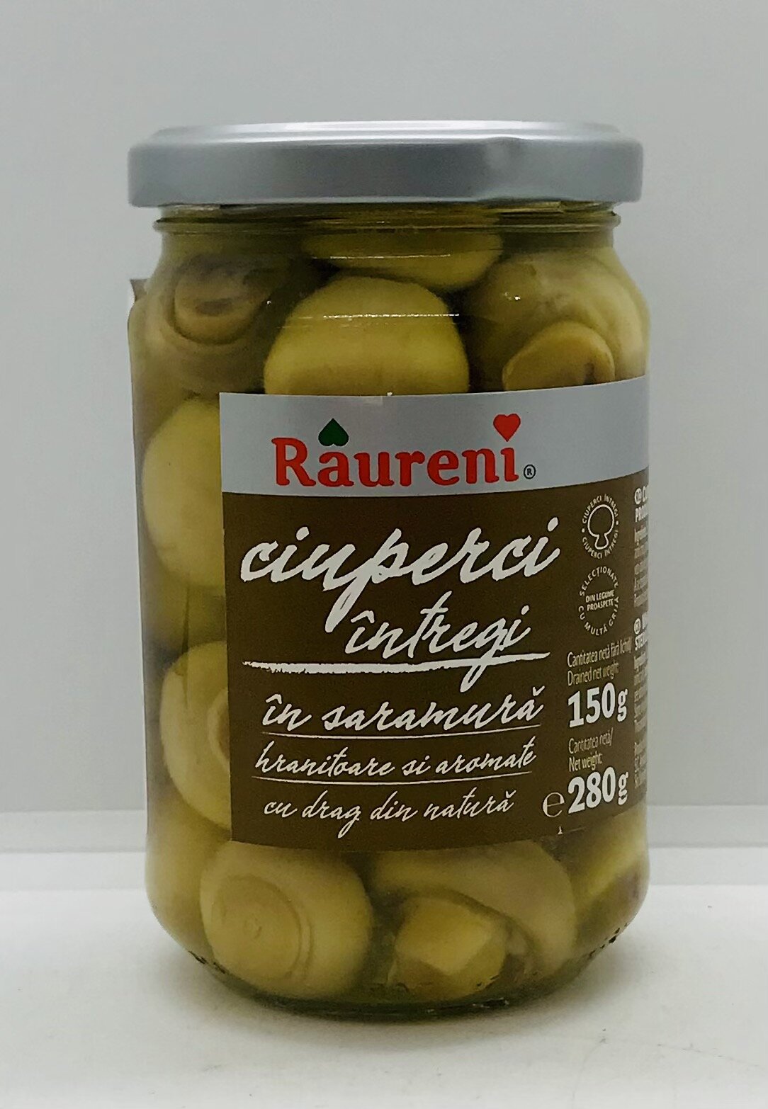 Raureni Whole Mushrooms in Brine 280g.