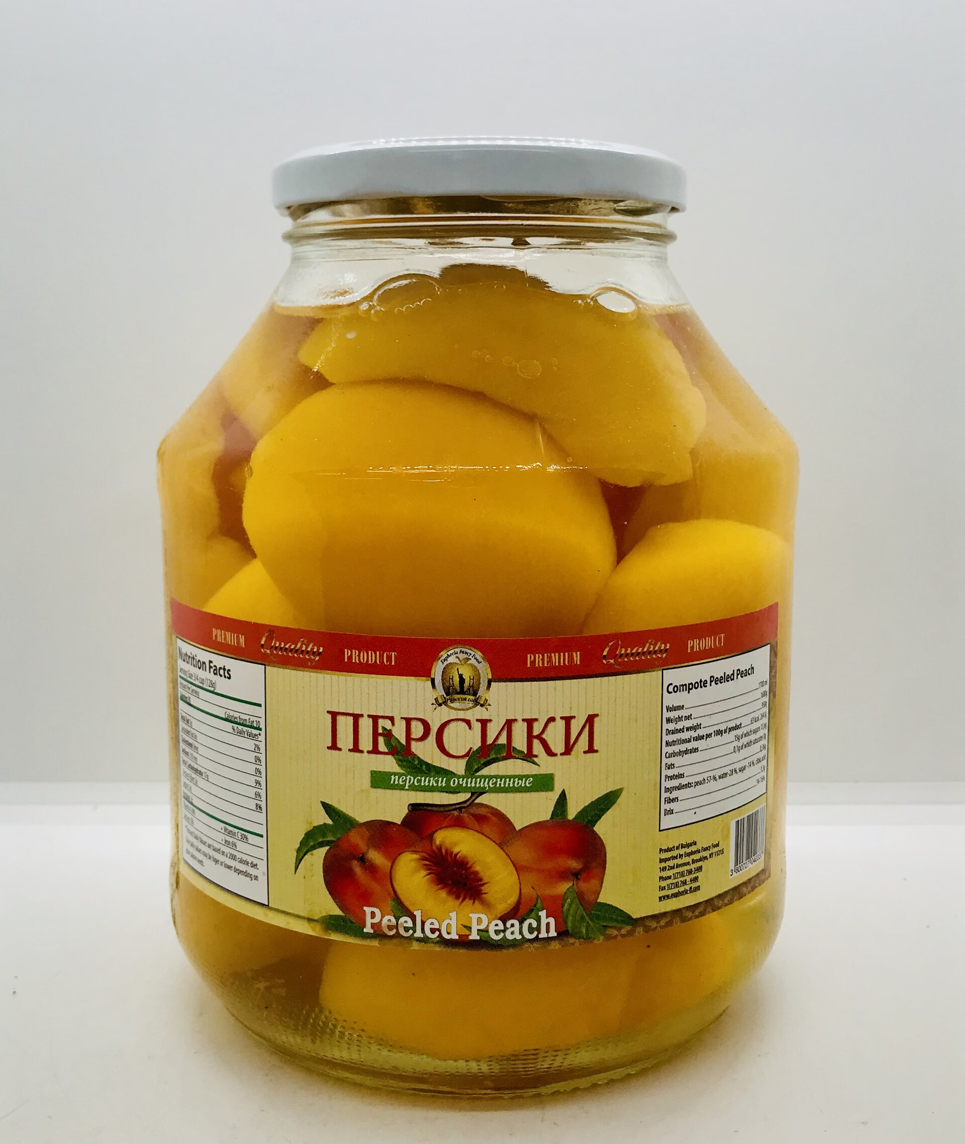 Peach 57%, water 28%, sugar 14%, citric acid.