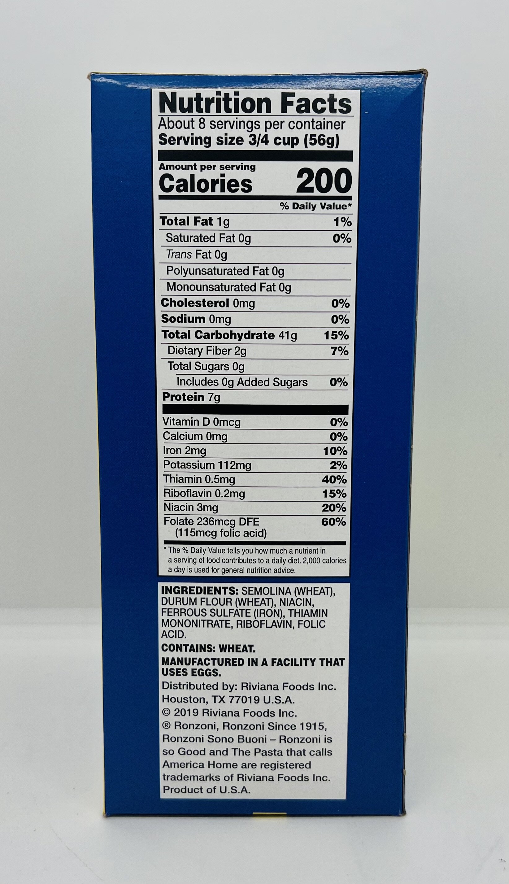 Semolina, durum flour, niacin, ferrous sulfate, thiamin mononitrate, riboflavin, folic acid.