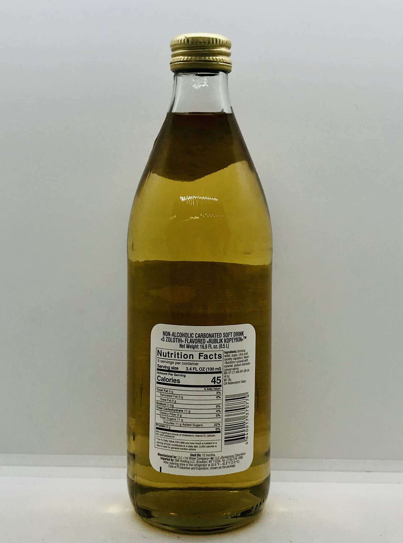 Drinking water, sugar, citric acid, flavor buratino colored with caramel, sodium benzoate.