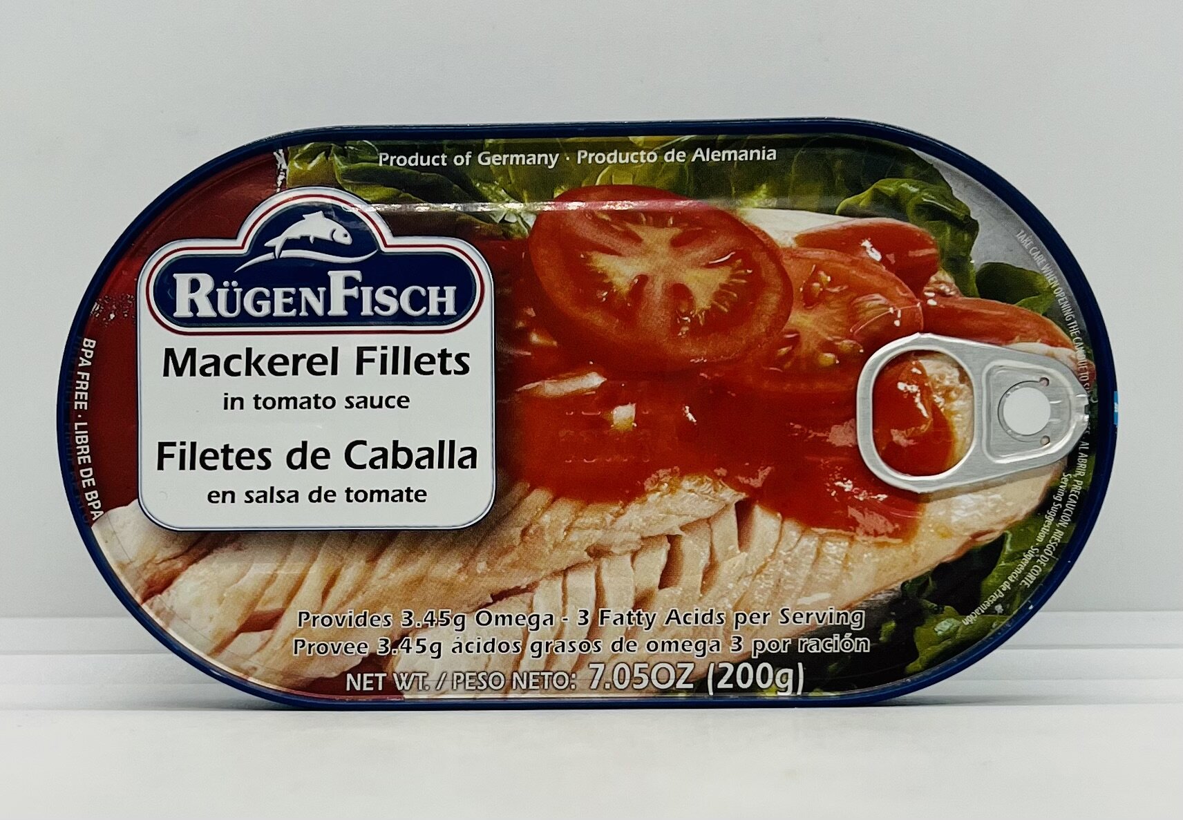 Mackerel fillets, water, tomato paste, canola oil, sugar, guar gum, mango chutney, food starch-modified, vinegar, spices, natural flavor.