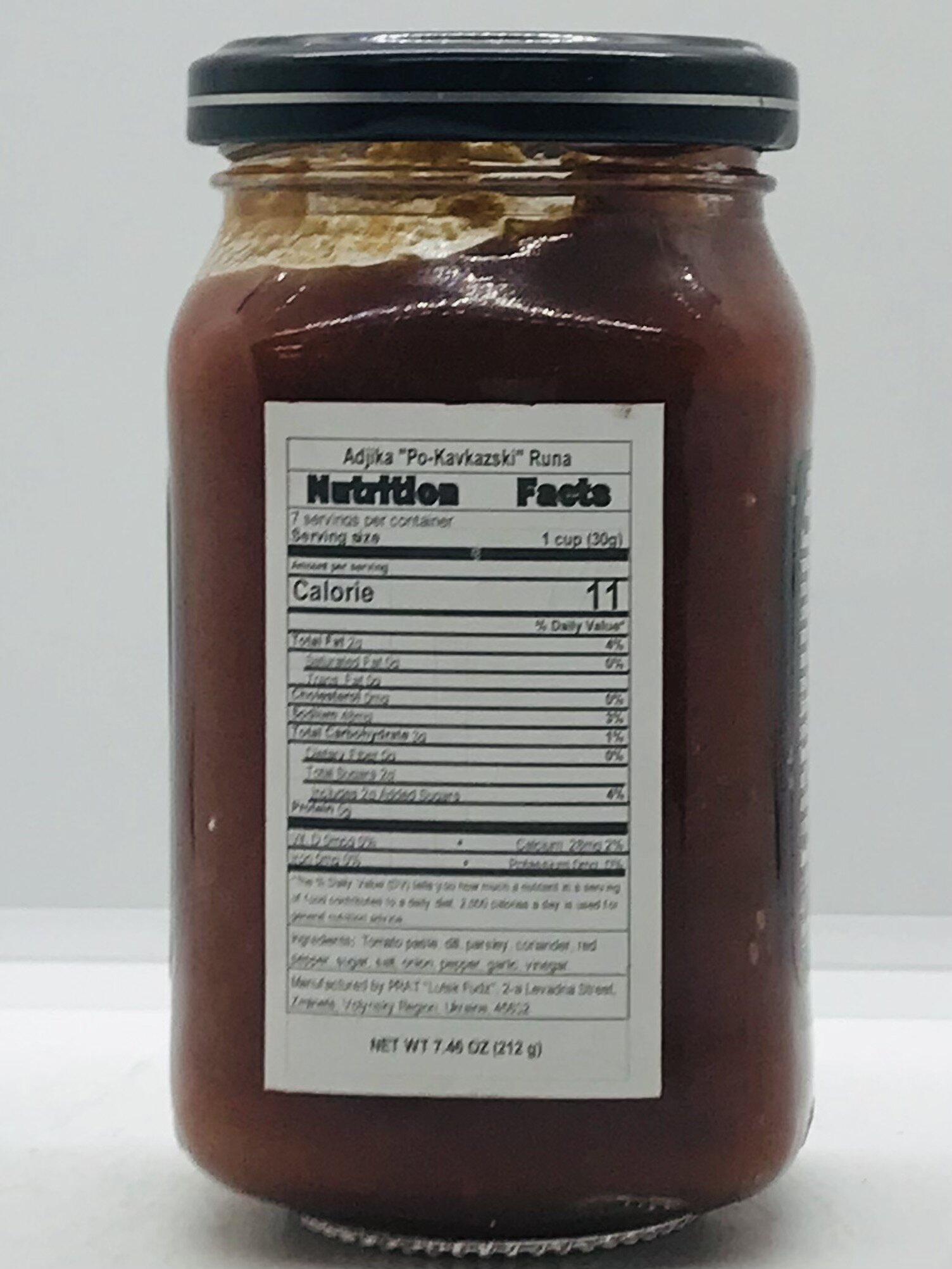 Tomato paste, dill, parsley, coriander, red pepper, sugar, salt, onion, pepper, garlic, vinegar.
