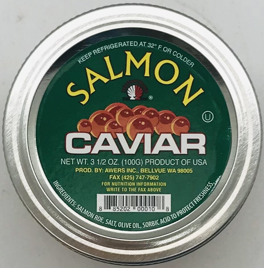 Salmon roe, salt, olive oil, sorbic acid to protect freshness.