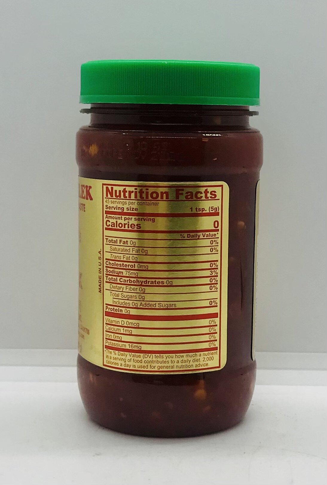 Chili, salt, acetic acid, potassium sorbate and sodium bisulfate as preservatives, xanthan gum.