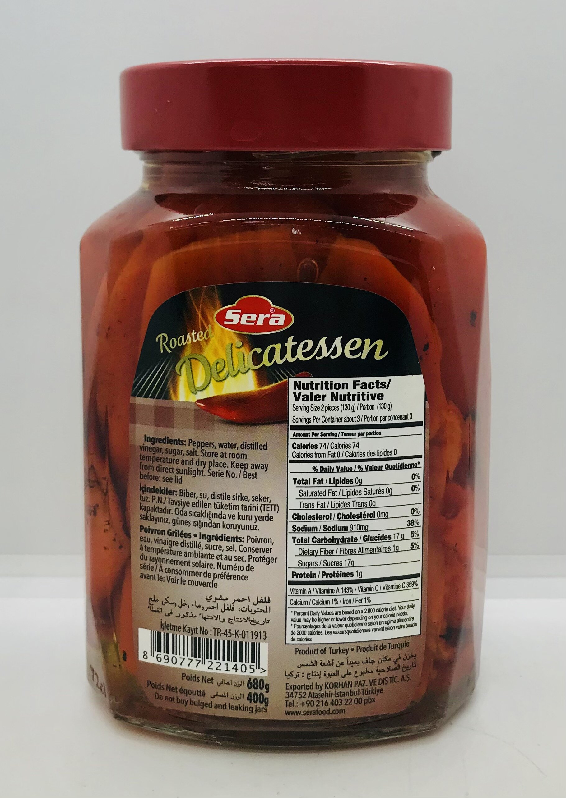 Peppers, water, distilled vinegar, sugar, salt.