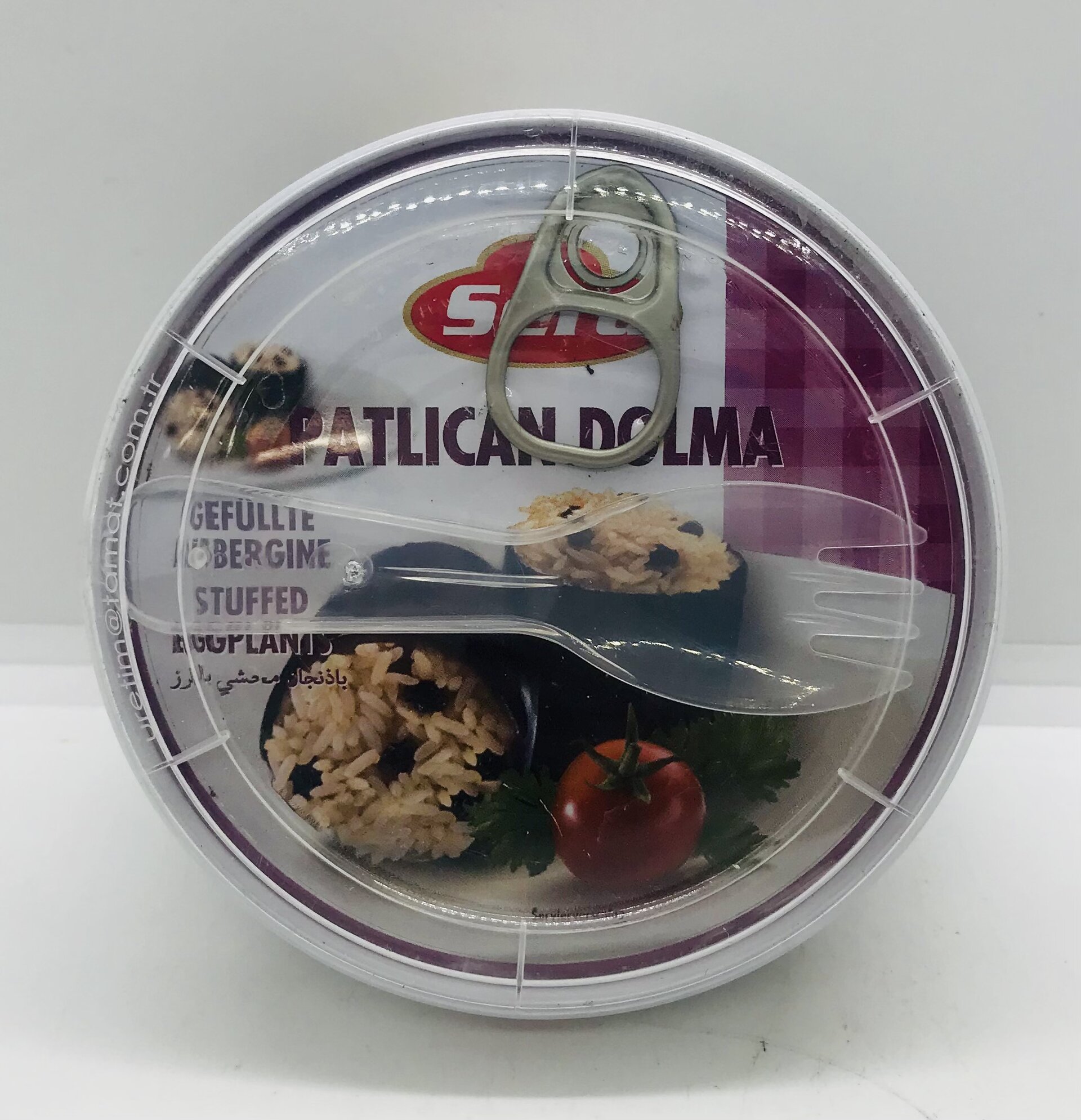 Eggplants, onion, rice, water, sunflower oil, tomatoes, sugar, salt, currant, dried mint, black pepper powder, acidity regulator (citric acid).