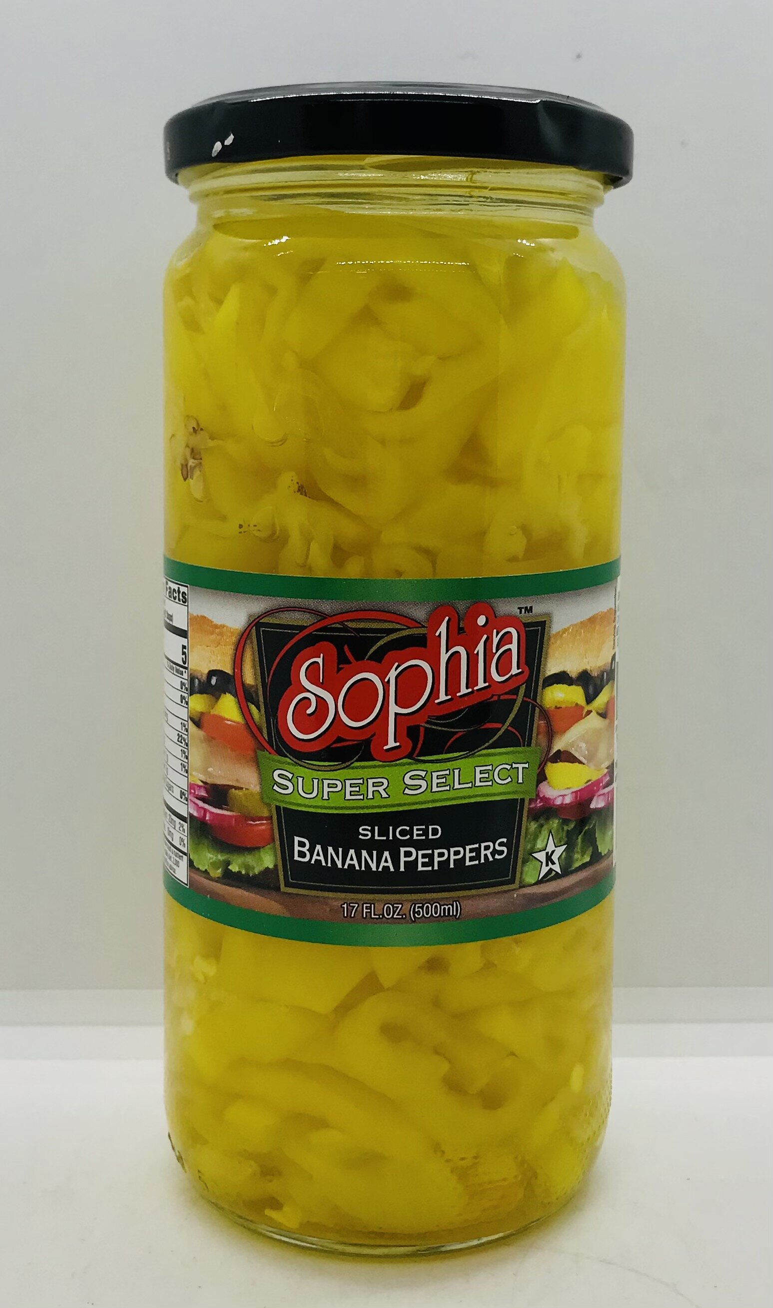 Banana peppers, water, salt, acetic acid, vinegar, calcium chloride, citric acid, sodium metabisulfite, sodium benzoate, turmeric.