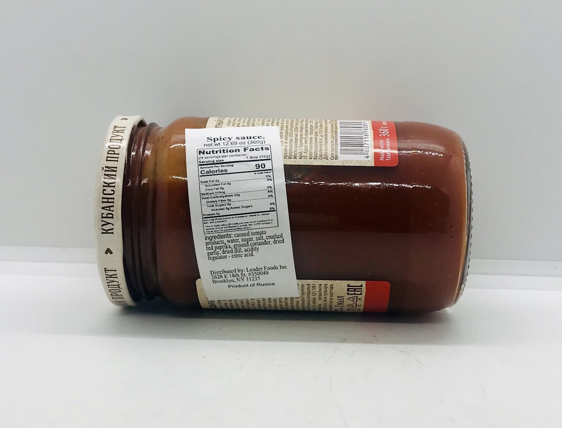 Canned tomato products, water, sugar, salt, crushed red paprika ground coriander, dried garlic, dried dill, acidity regulator - citric acid.