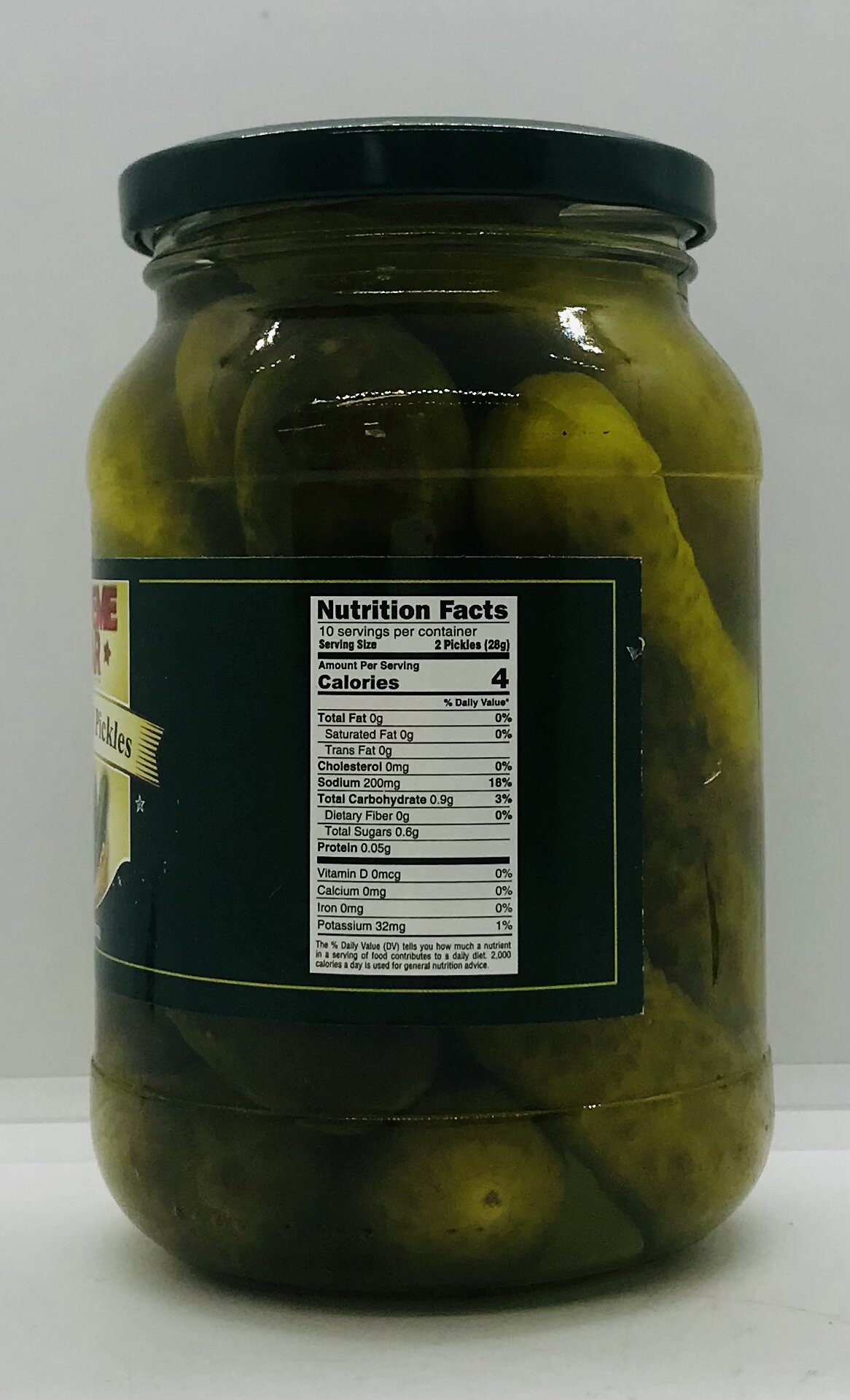 Gherkins, water, vinegar, salt, calcium chloride, natural flavours, yellow #5.