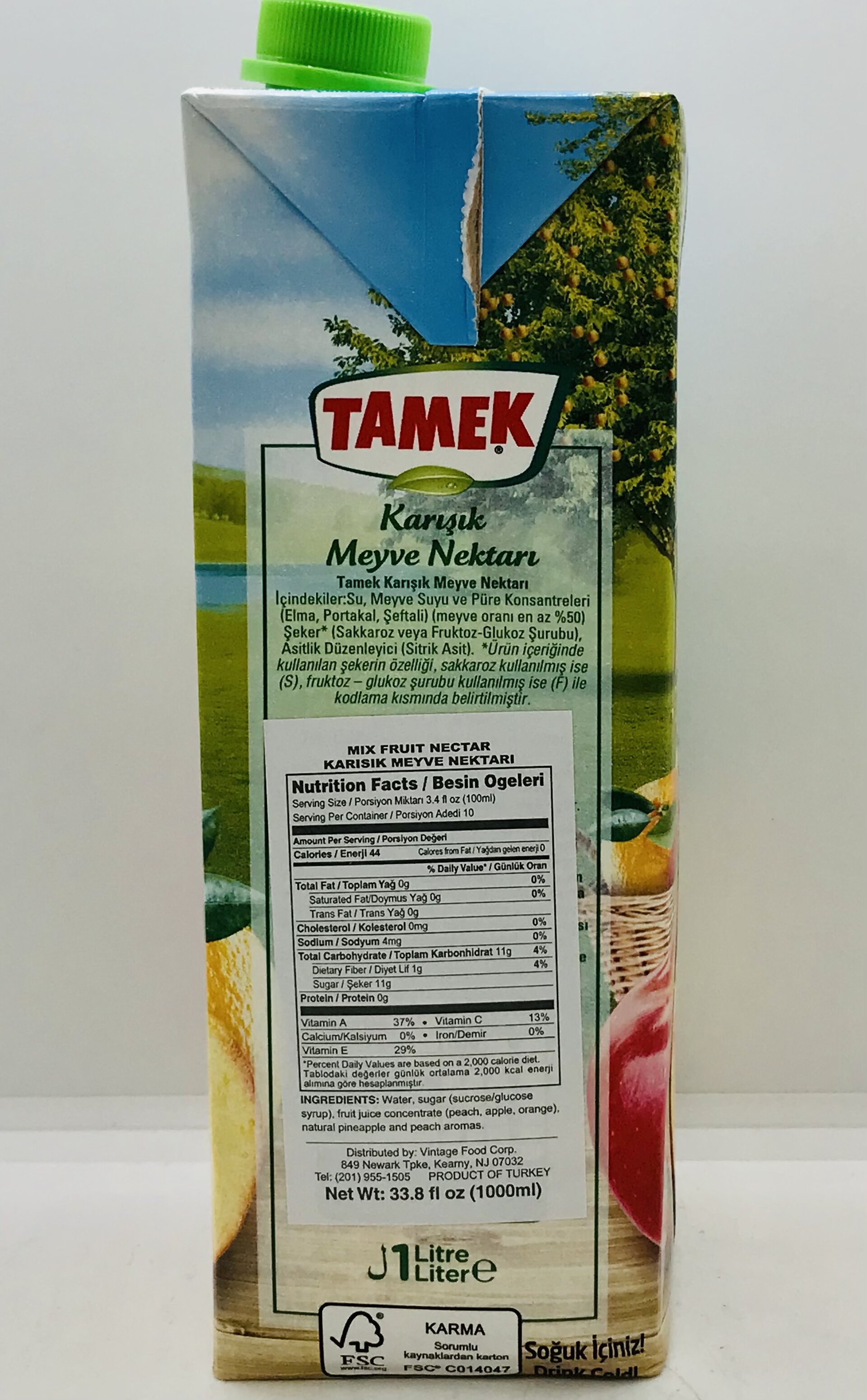 Water, sugar, fruit juice concentrate(peach, apple, orange), natural pineapple and peach aromas.