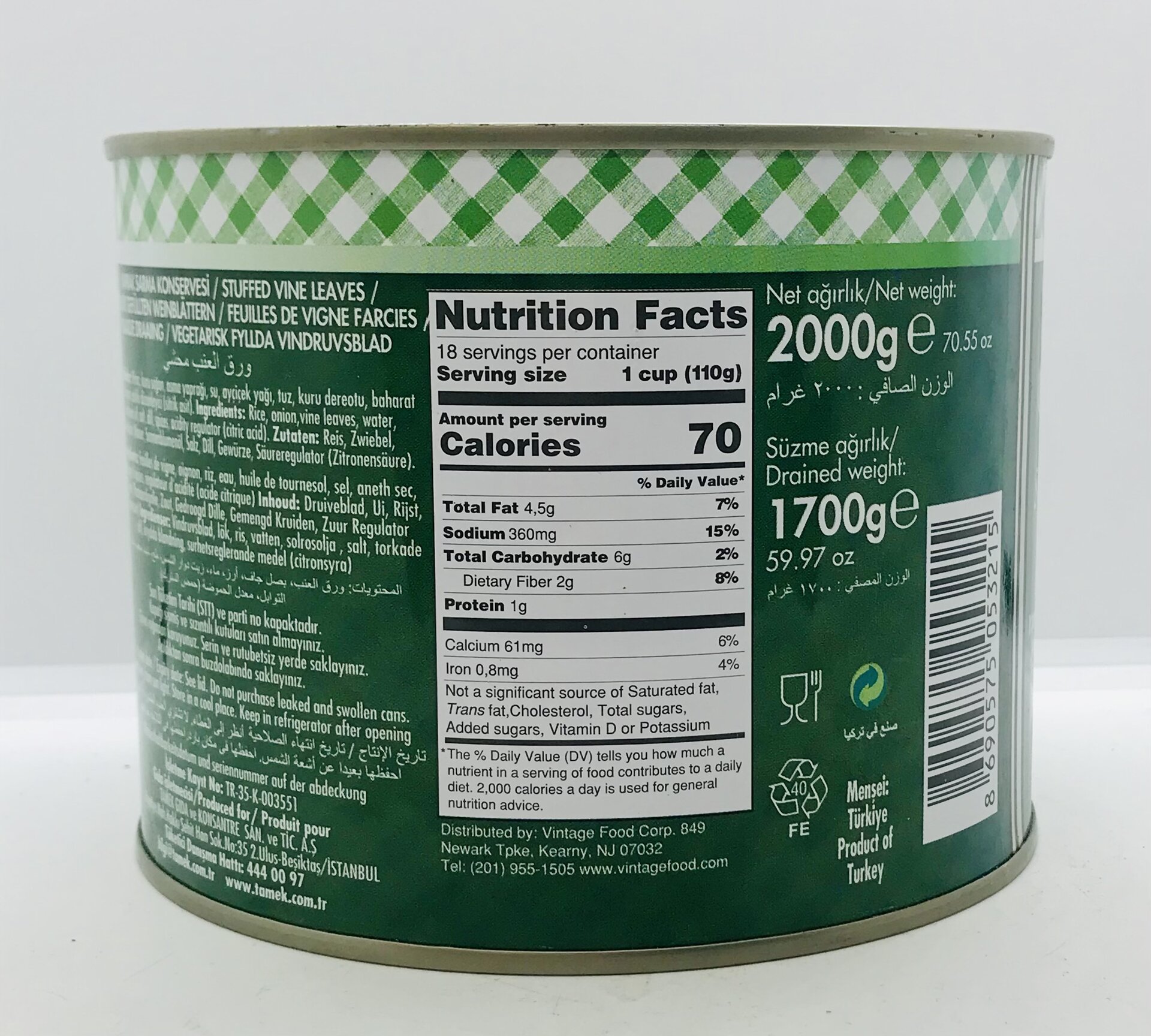NET WT 70.5 OZ (4 LBS 6.5 OZ) 2000g.