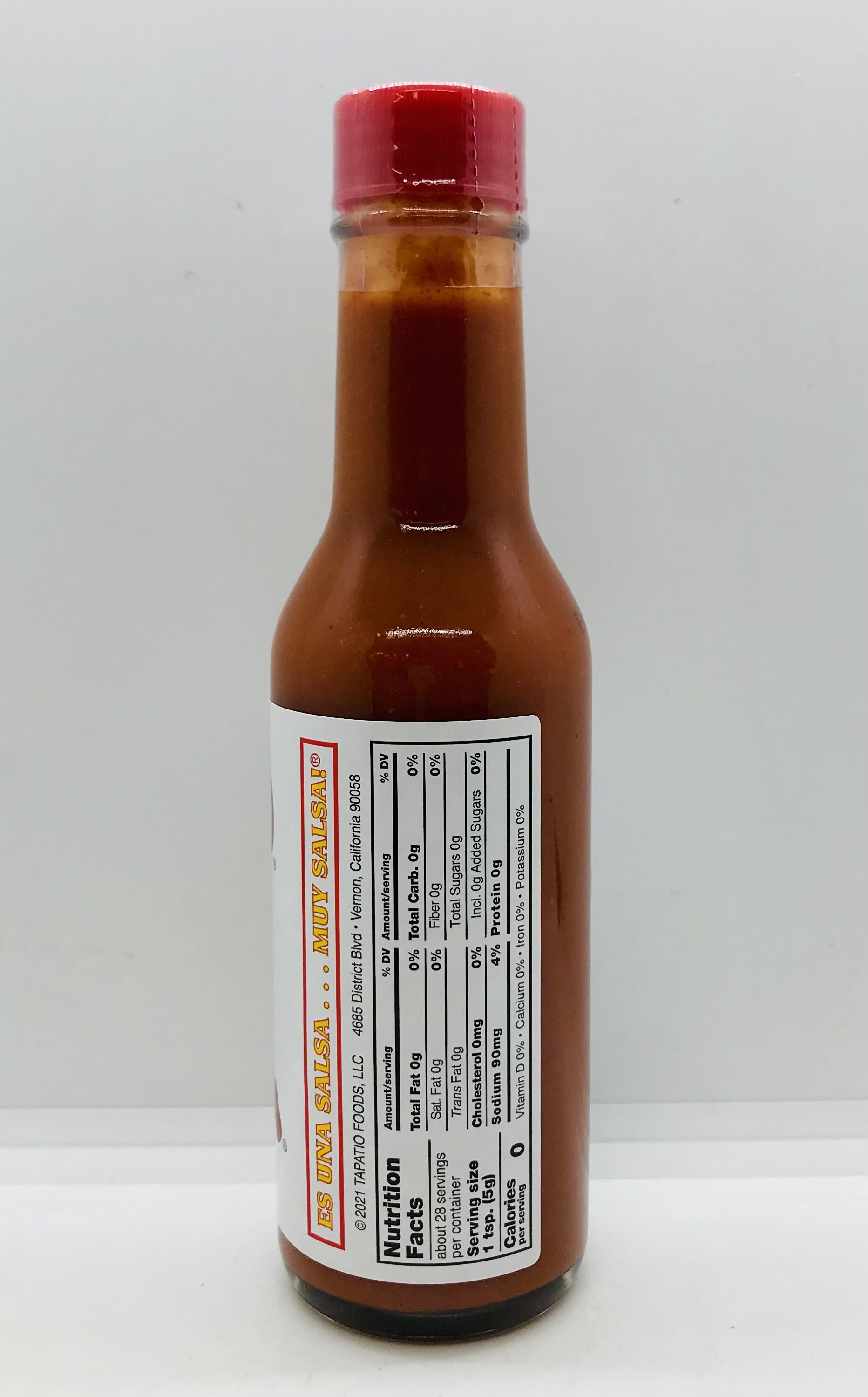 Water, red peppers, salt, spices, garlic, acetic acid, xanthan gum, sodium benzoate as a preservative.