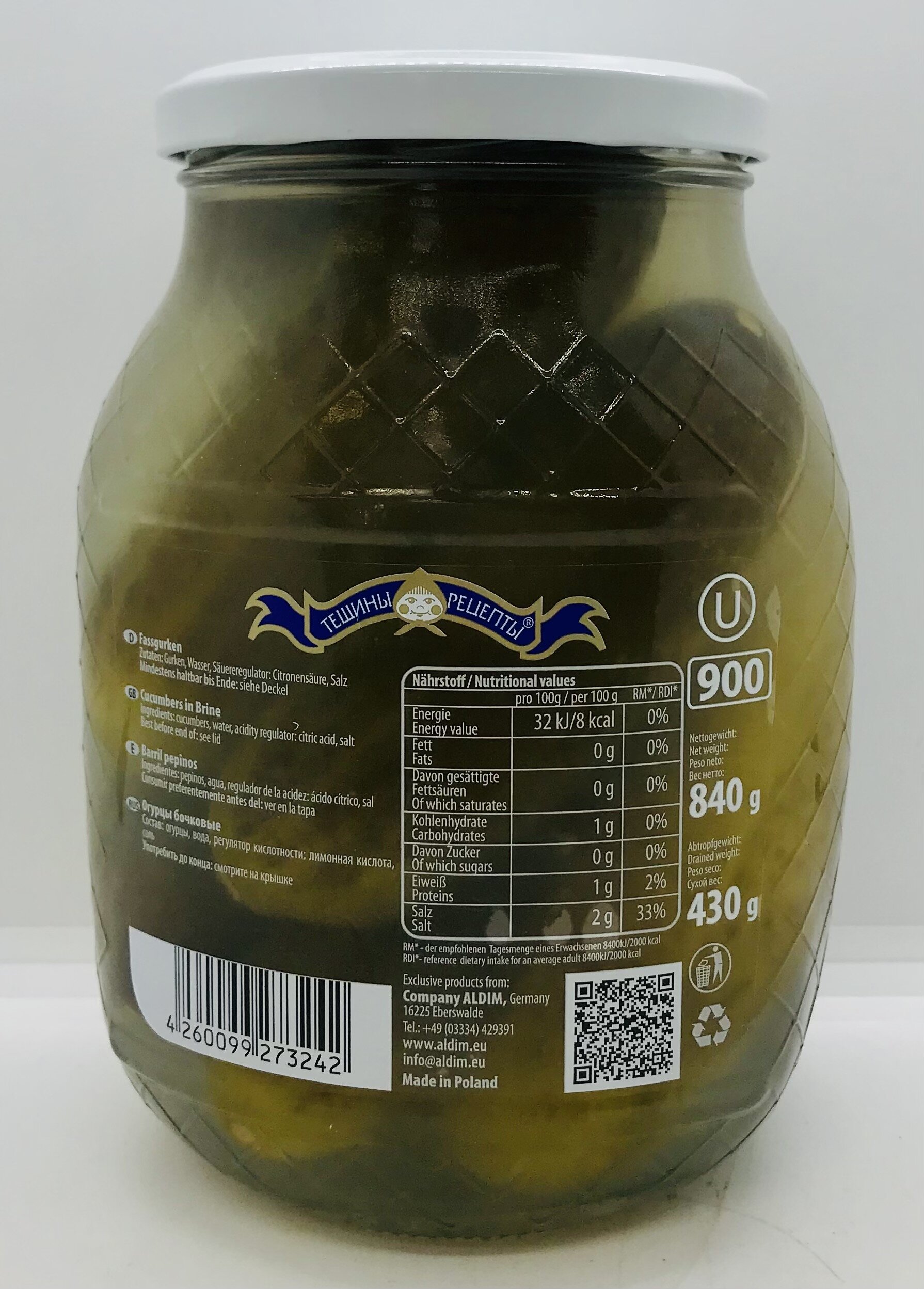 Cucumbers, water, acidity regulator: citric acid, salt.