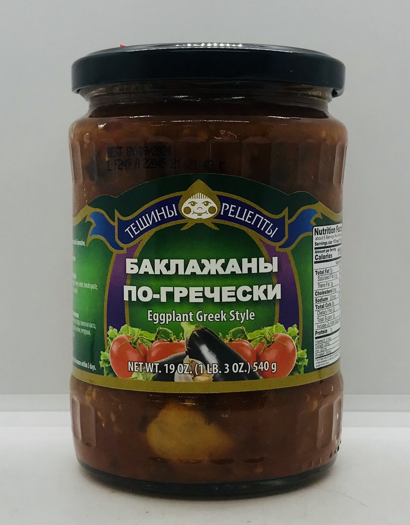 Eggplant, onion, water, tomato paste, sunflower oil, sugar, salt, garlic, parsley.