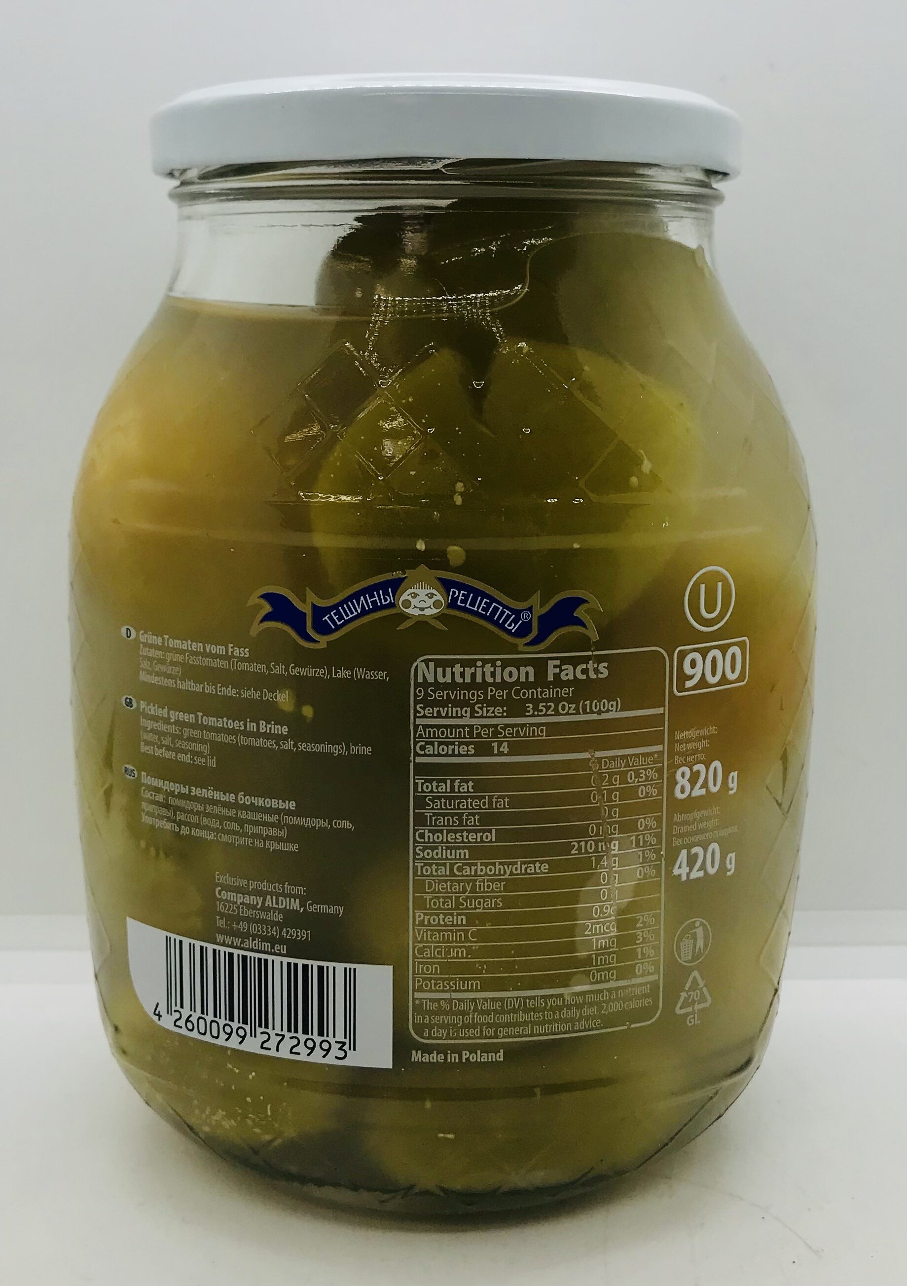 Green tomatoes (tomatoes, salt, seasonings), brine (water, salt, seasoning).
